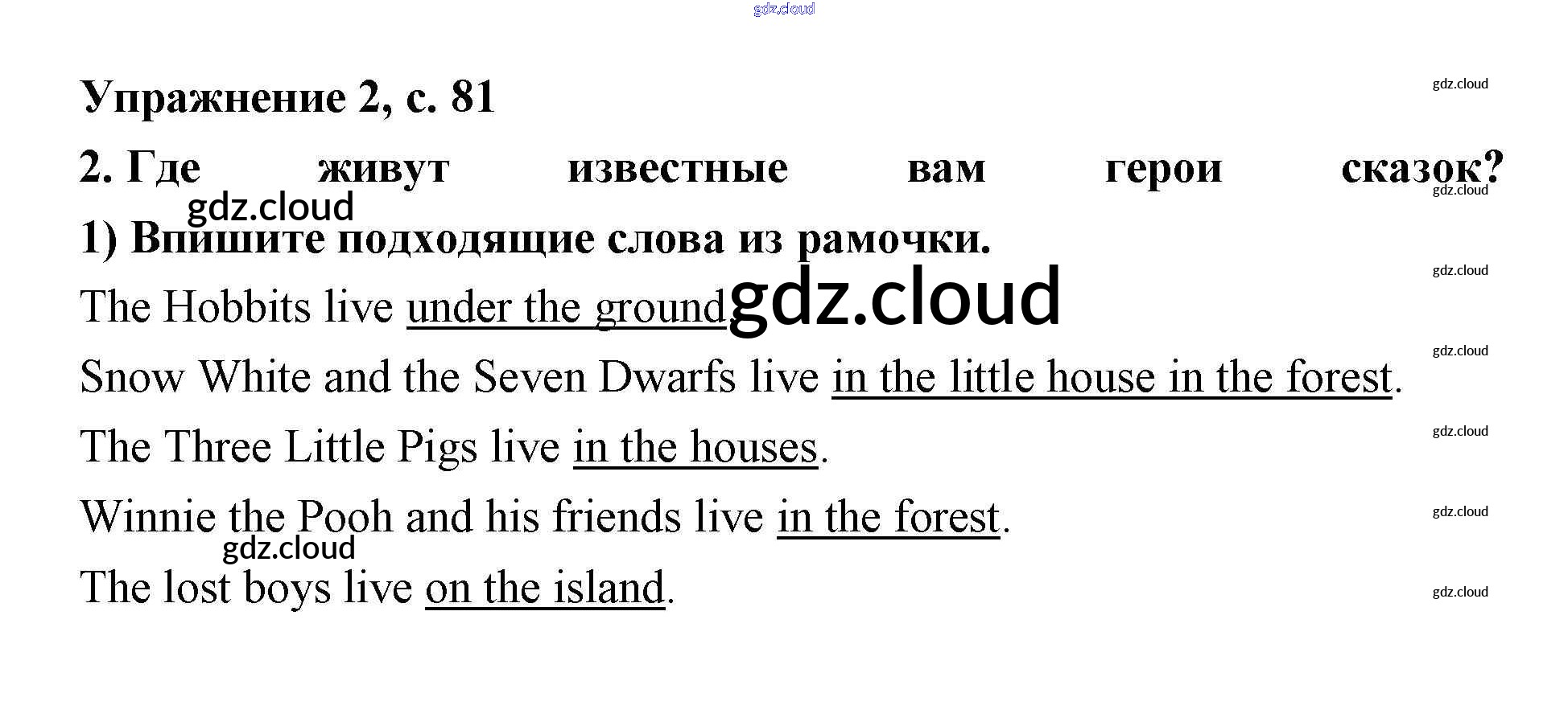 Ответ на задание 81 Рабочая тетрадь Английский язык за 2 (второй) класс Кузовлев, Перегудова, Пастухова 2011