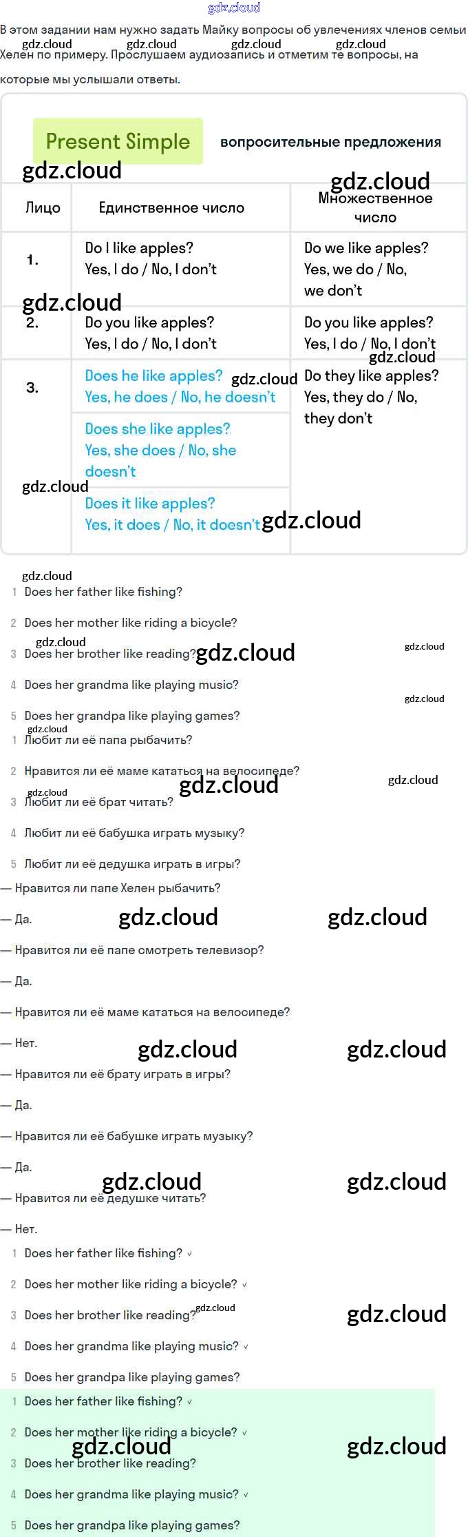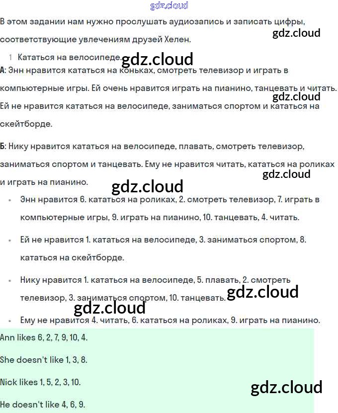 Ответы. Lesson 49. Does Hellen like reading по Английскому языку 2 класс Рабочая тетрадь Кузовлев Просвещение