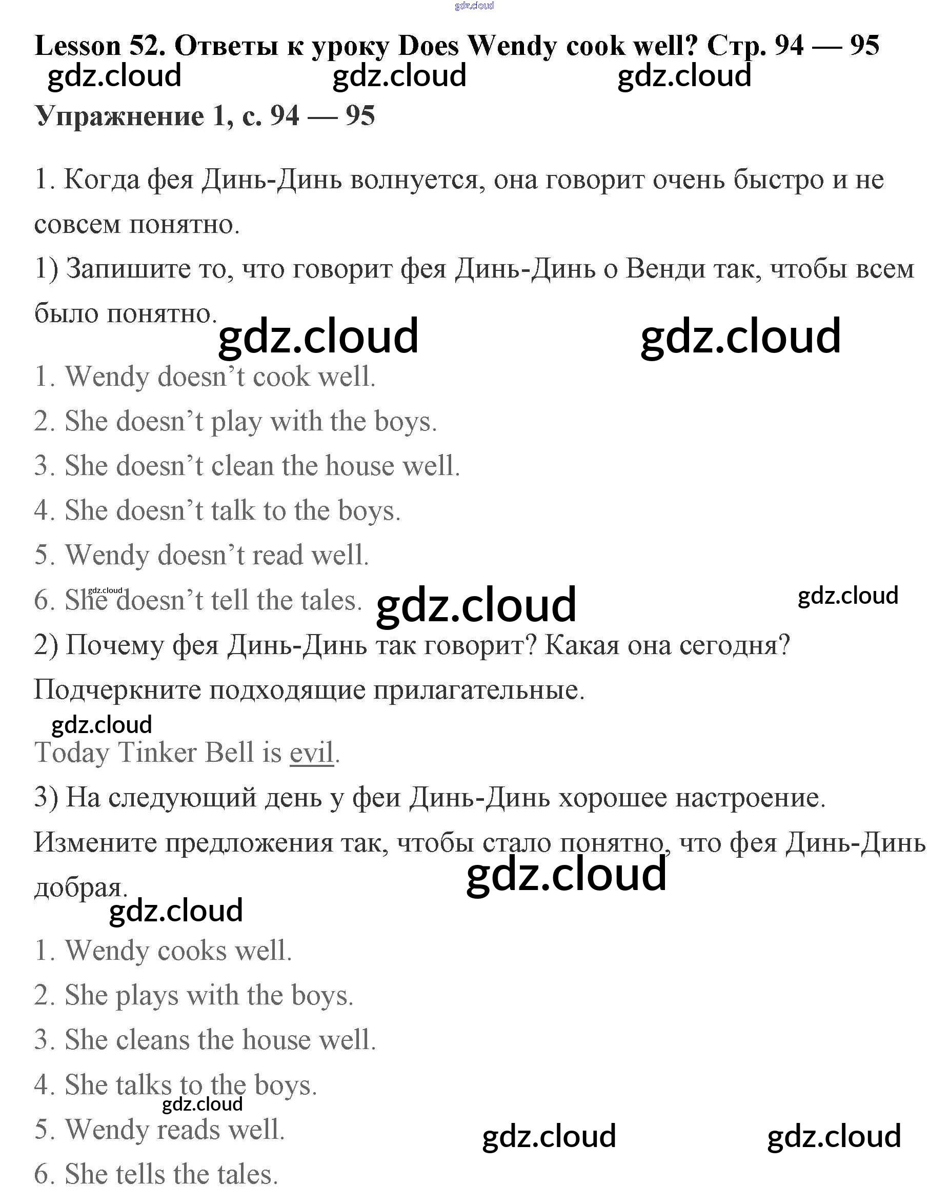 lesson 52. Does Wendy cook well / 94