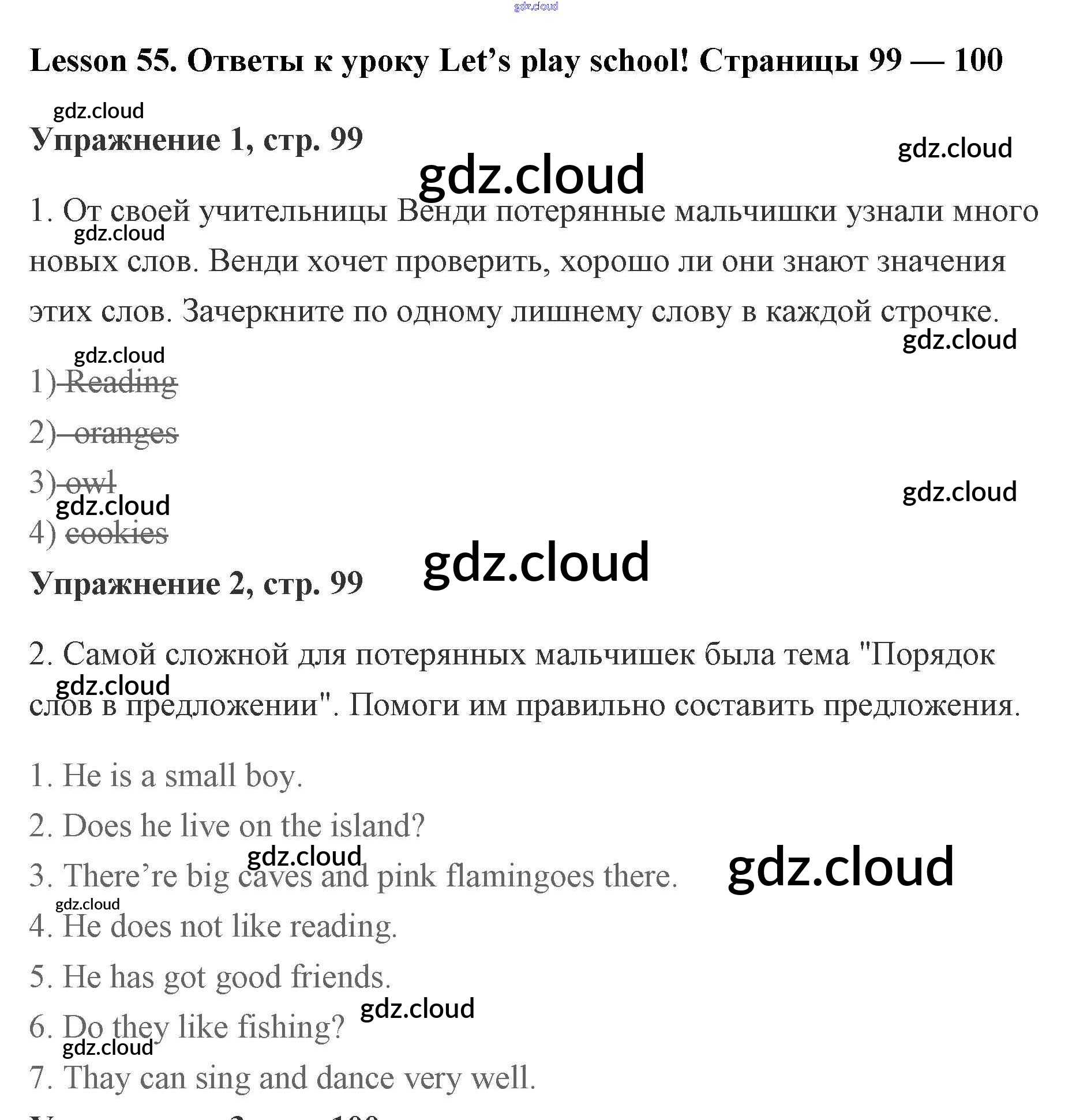 Ответы. Lesson 55. Let’s play school! (с. 99 – 100) по Английскому языку 2 класс Рабочая тетрадь Кузовлев Просвещение