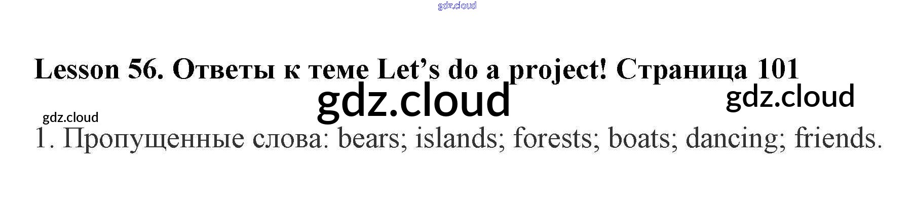 Ответы. Lesson 56. Let’s do a project! (с. 101) по Английскому языку 2 класс Рабочая тетрадь Кузовлев Просвещение