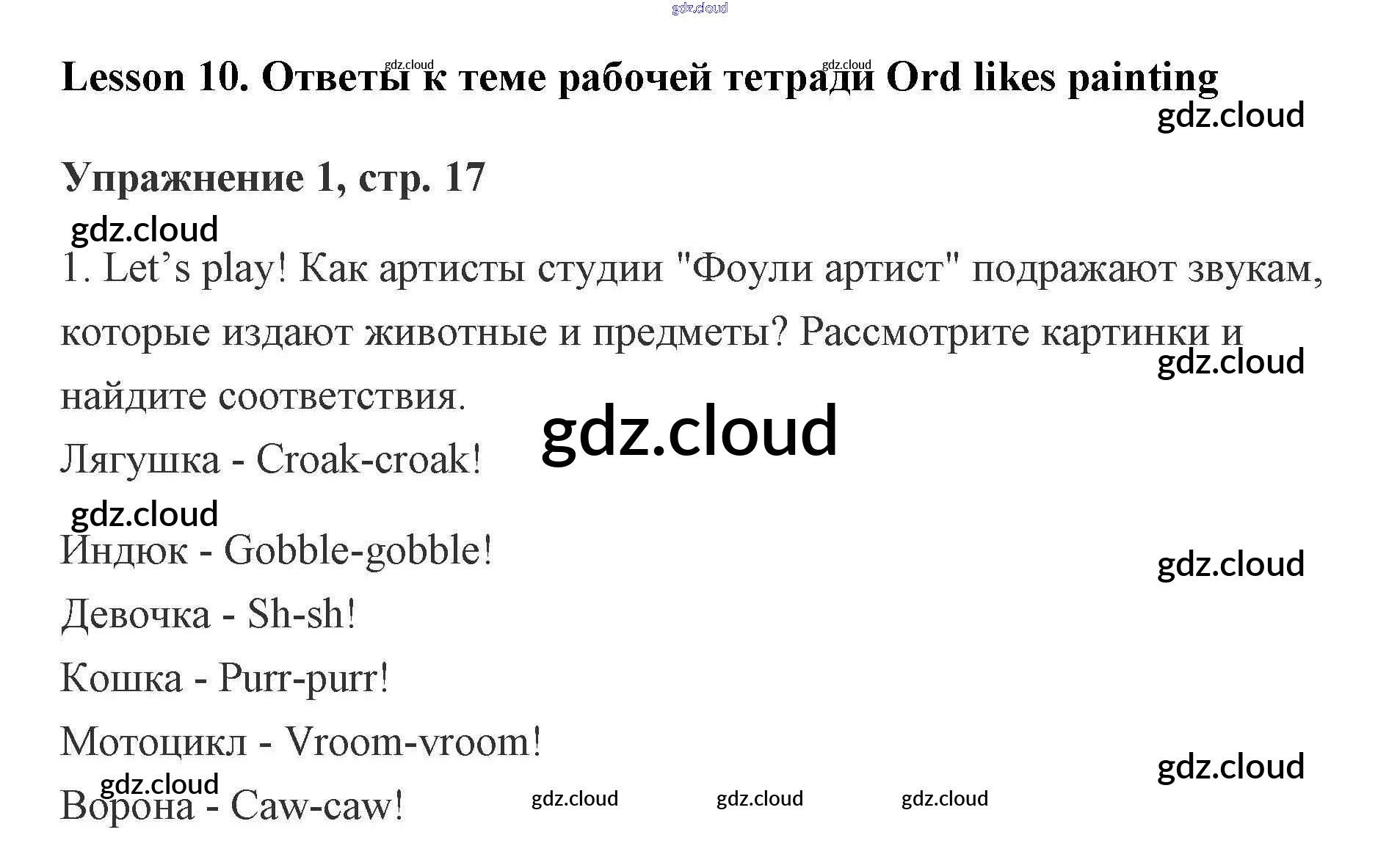 Ответы. Lesson 10. Ord likes painting по Английскому языку 2 класс Рабочая тетрадь Кузовлев Просвещение