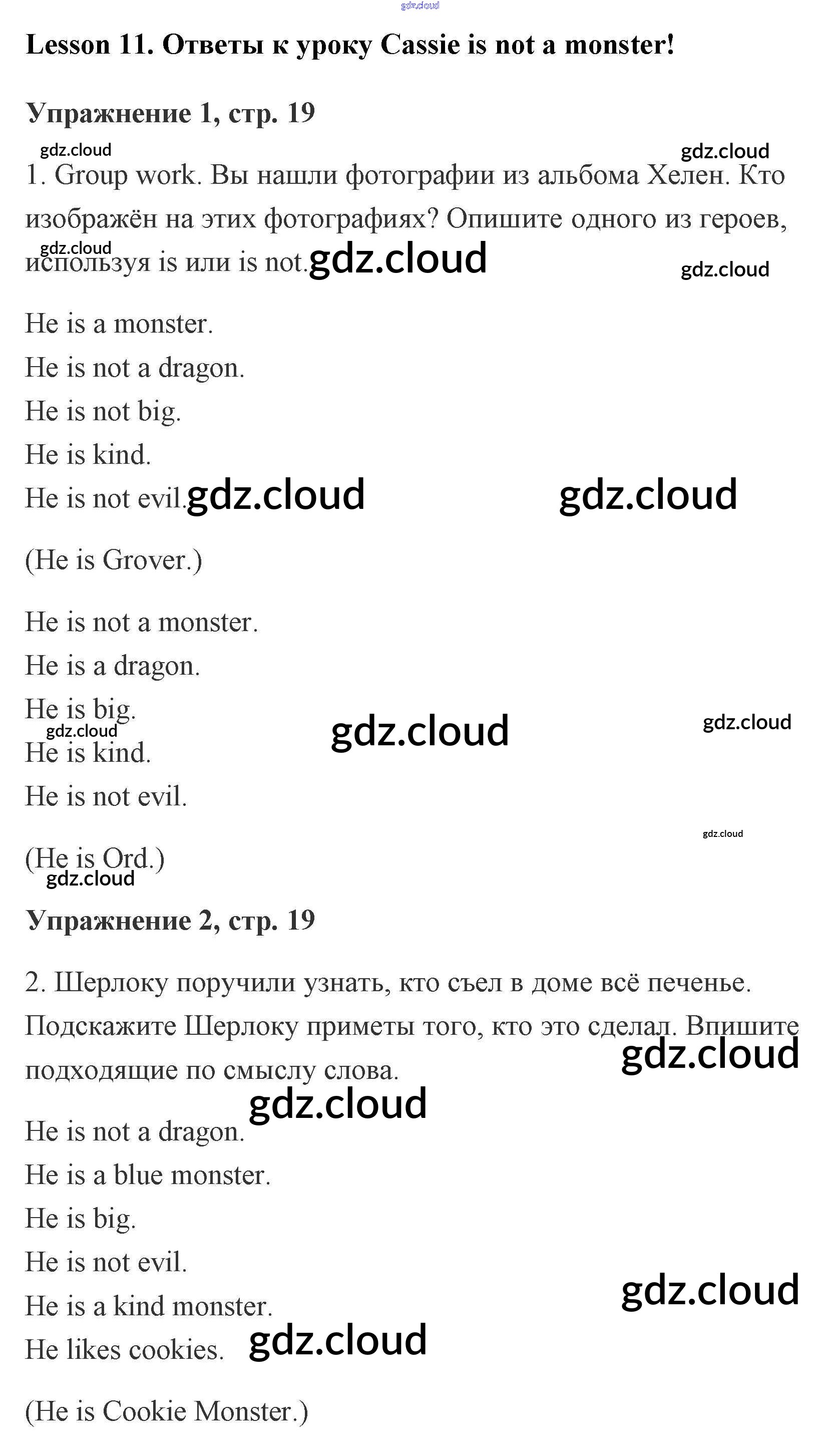 Ответы. Lesson 11. Cassie is not a monster! по Английскому языку 2 класс Рабочая тетрадь Кузовлев Просвещение