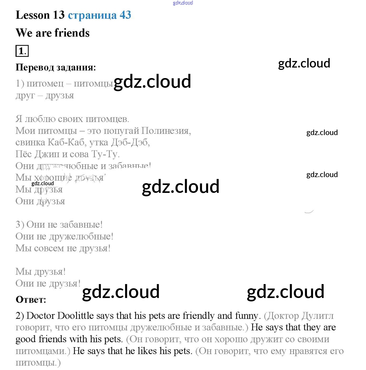 Ответ на задание 13 Учебник Английский язык за 2 (второй) класс Кузовлев, Перегудова, Пастухова Перспектива 2017 Часть 1, 2