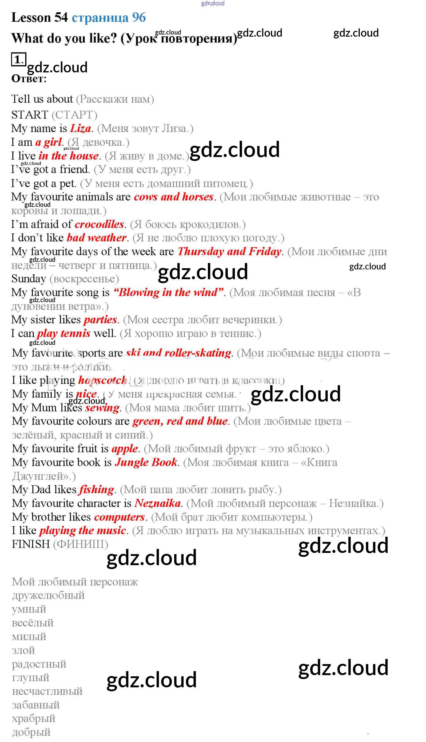 Ответ на задание 54 Учебник Английский язык за 2 (второй) класс Кузовлев, Перегудова, Пастухова Перспектива 2017 Часть 1, 2