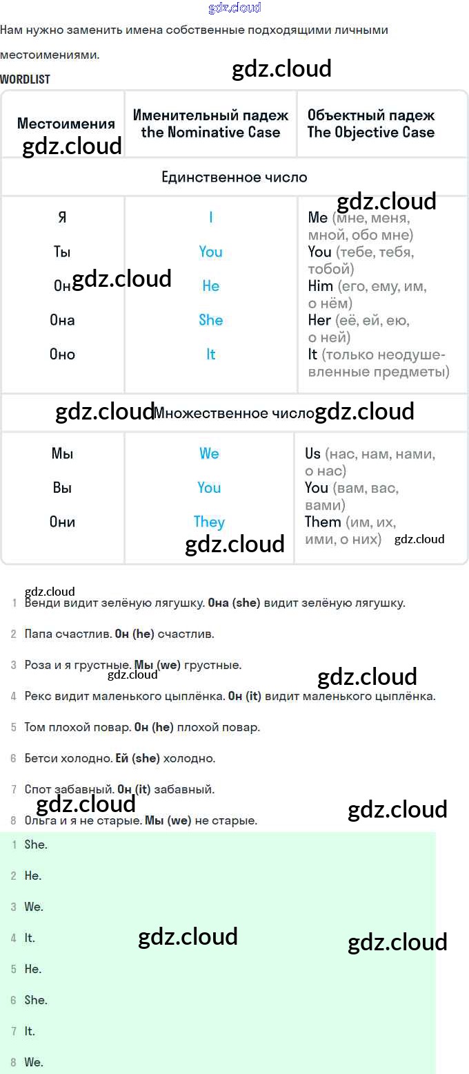 Ответ на задание 7 Лексико-грамматический практикум Английский язык за 2 (второй) класс Афанасьева, Михеева, Баранова Rainbow 2020