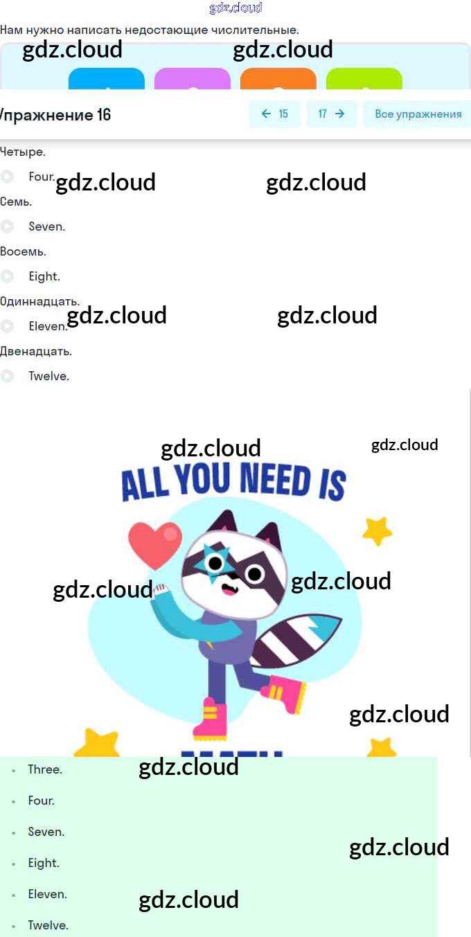 Ответ на задание 16 Лексико-грамматический практикум Английский язык за 2 (второй) класс Афанасьева, Михеева, Баранова Rainbow 2020