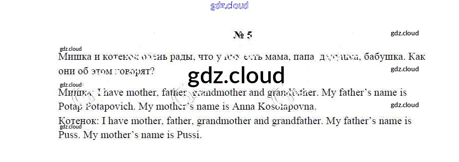 Ответ на задание 5 Учебник Английский язык за 2 (второй) класс Верещагина, Бондаренко, Притыкина Углубленный уровень 2017 Часть 1, 2