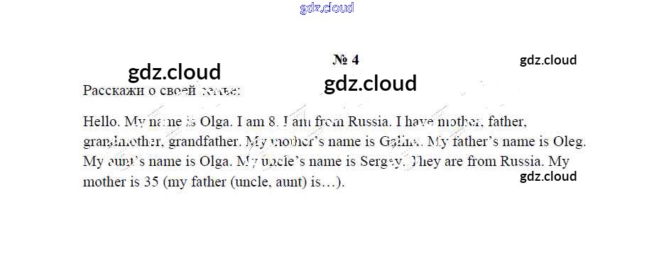 Ответ на задание Домашнее задание 4 Учебник Английский язык за 2 (второй) класс Верещагина, Бондаренко, Притыкина Углубленный уровень 2017 Часть 1, 2