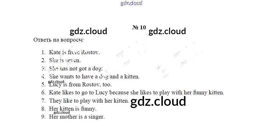 Ответ на задание 10 Учебник Английский язык за 2 (второй) класс Верещагина, Бондаренко, Притыкина Углубленный уровень 2017 Часть 1, 2