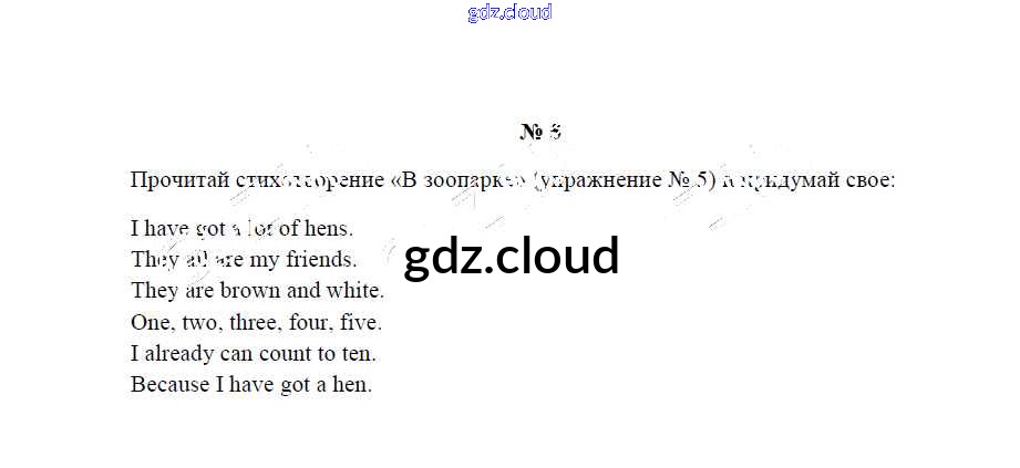 Ответ на задание Домашнее задание 5 Учебник Английский язык за 2 (второй) класс Верещагина, Бондаренко, Притыкина Углубленный уровень 2017 Часть 1, 2