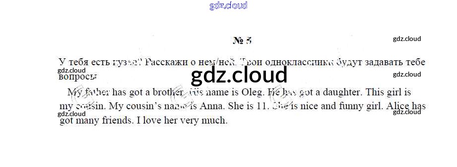 Ответ на задание Домашнее задание 5 Учебник Английский язык за 2 (второй) класс Верещагина, Бондаренко, Притыкина Углубленный уровень 2017 Часть 1, 2