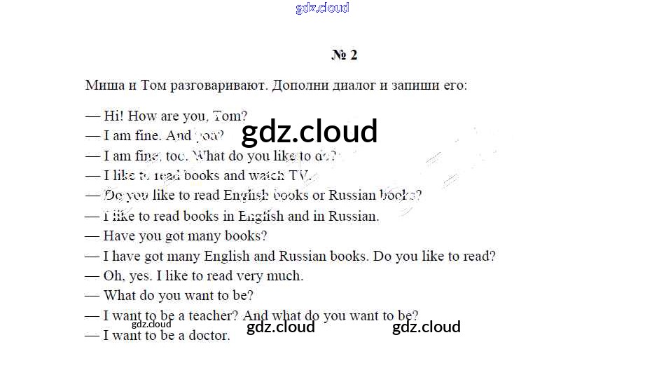 Ответ на задание 2 Рабочая тетрадь Английский язык за 2 (второй) класс Верещагина, Бондаренко, Притыкина Углубленный уровень 2017
