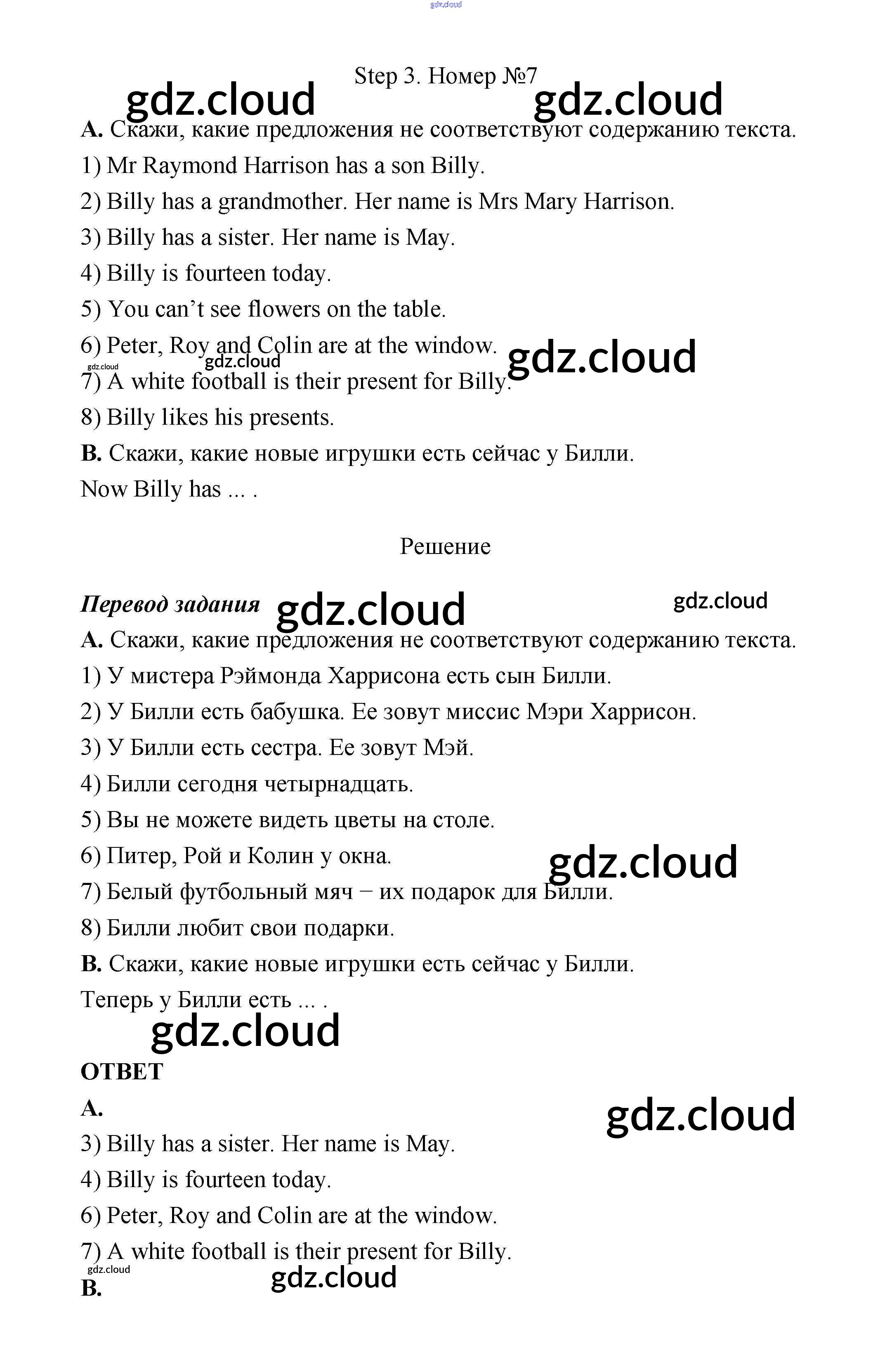 Ответ на задание 7 Учебник Английский язык за 3 (третий) класс Афанасьева, Михеева Rainbow 2015 онлайн и без номера телефона.