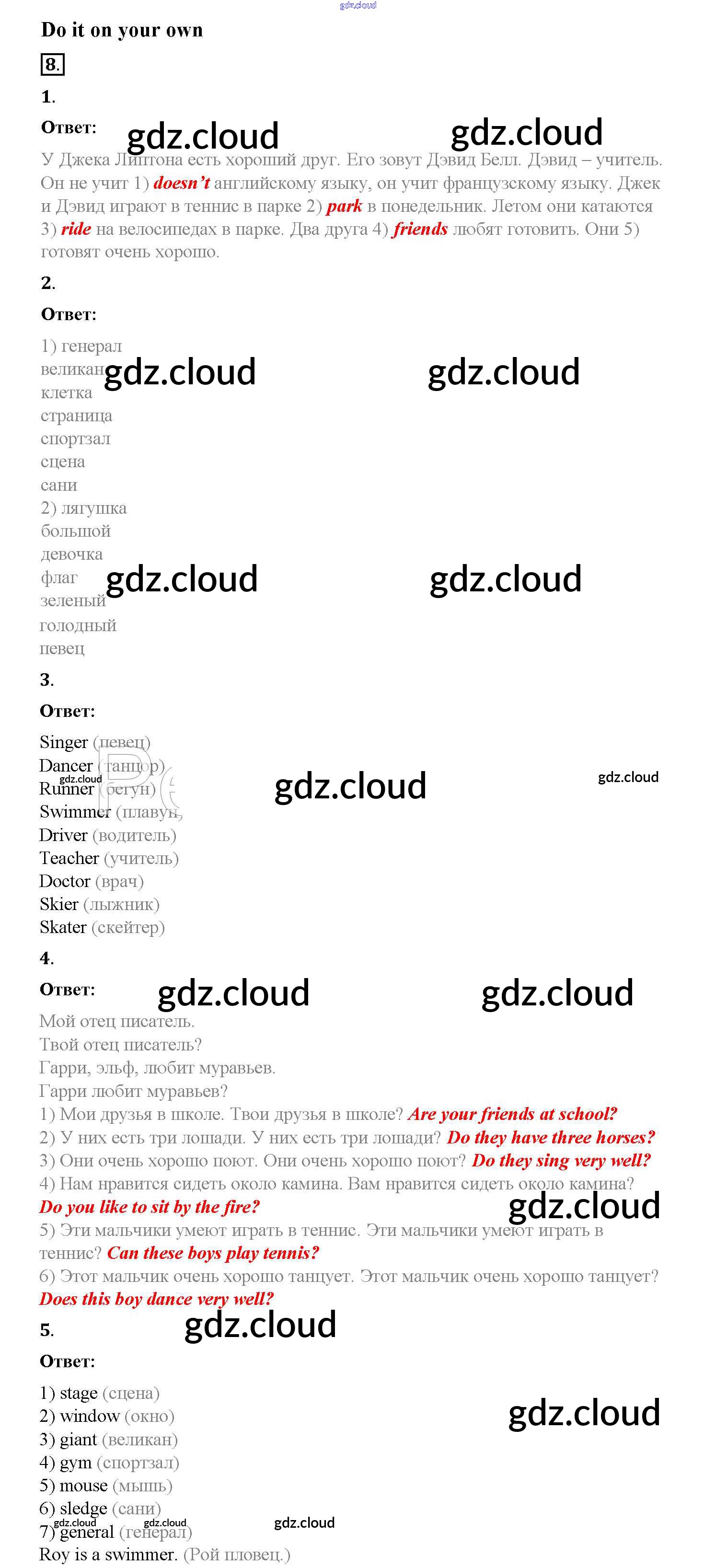 Ответ на задание 8 Учебник Английский язык за 3 (третий) класс Афанасьева, Михеева Rainbow 2015 Часть 1, 2