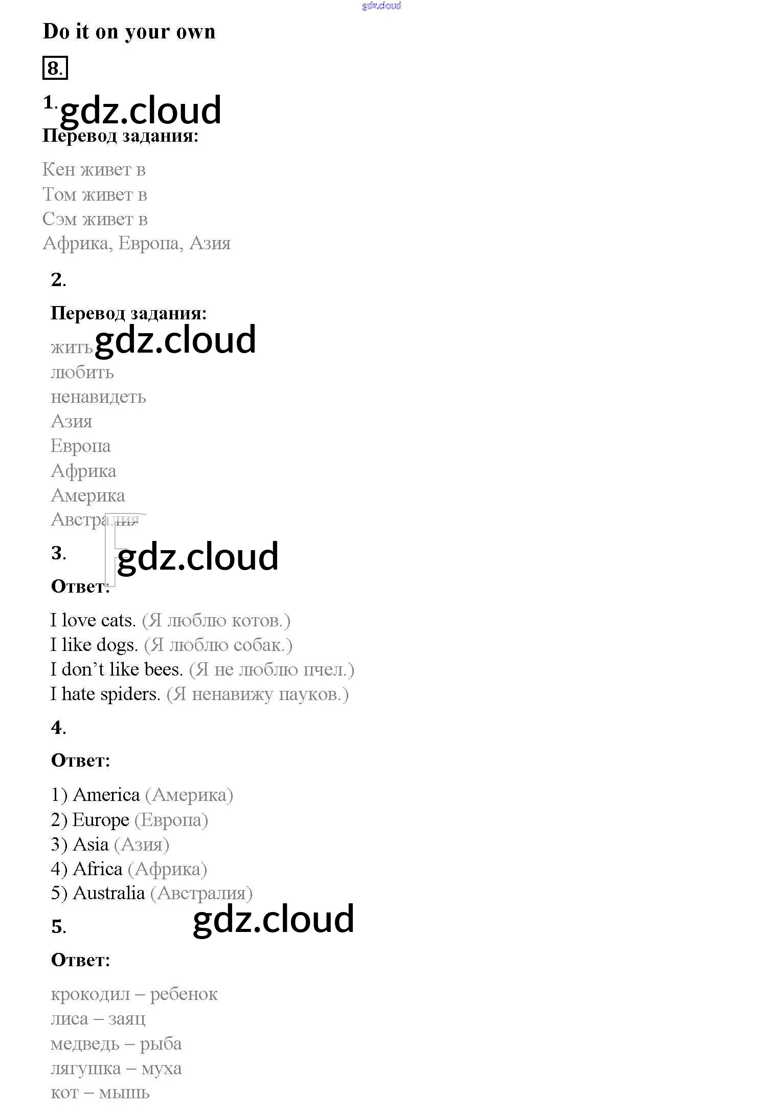 Ответ на задание 8 Учебник Английский язык за 3 (третий) класс Афанасьева, Михеева Rainbow 2015 Часть 1, 2