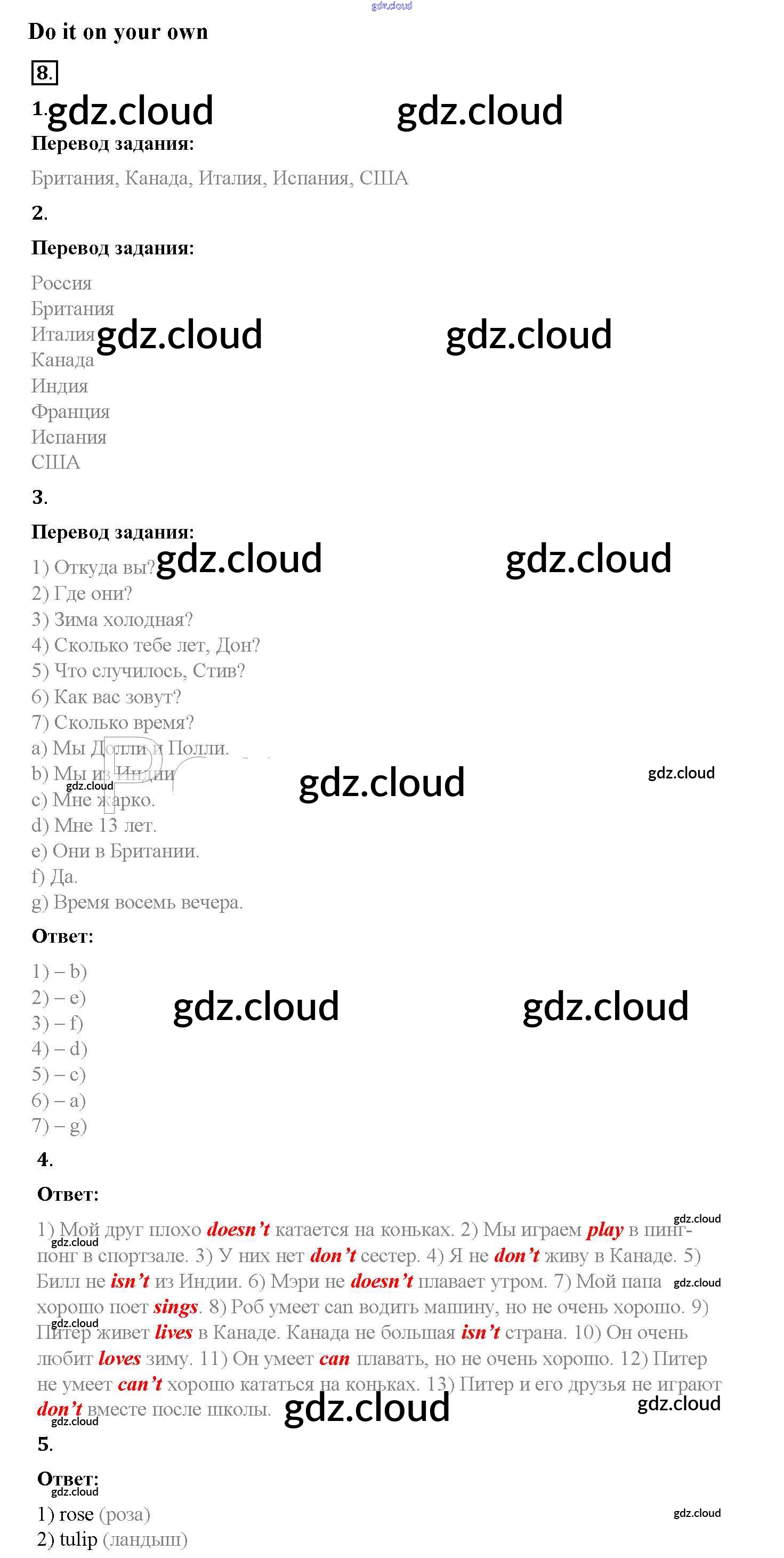 Ответ на задание 8 Учебник Английский язык за 3 (третий) класс Афанасьева, Михеева Rainbow 2015 Часть 1, 2