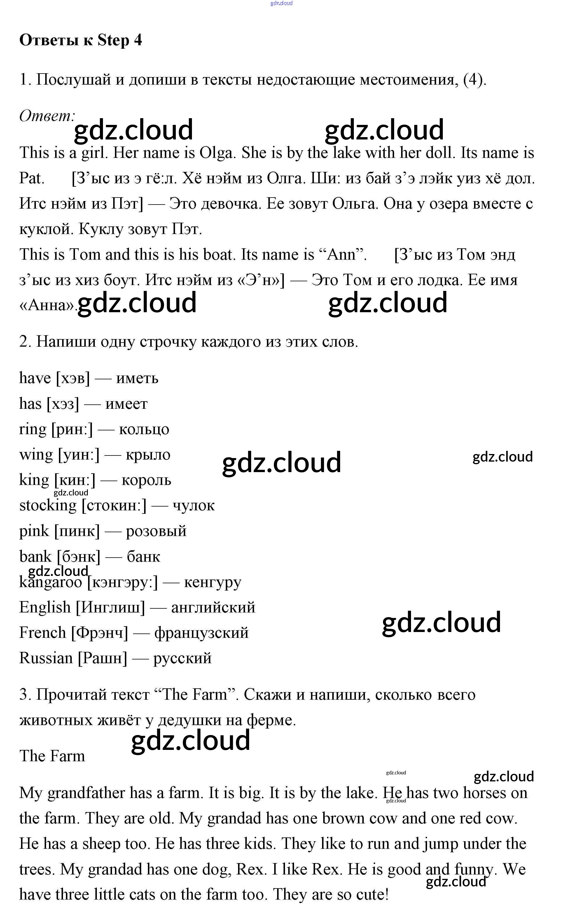 Ответ на задание Step 4 Рабочая тетрадь Английский язык за 3 (третий) класс Афанасьева, Михеева Rainbow 2015