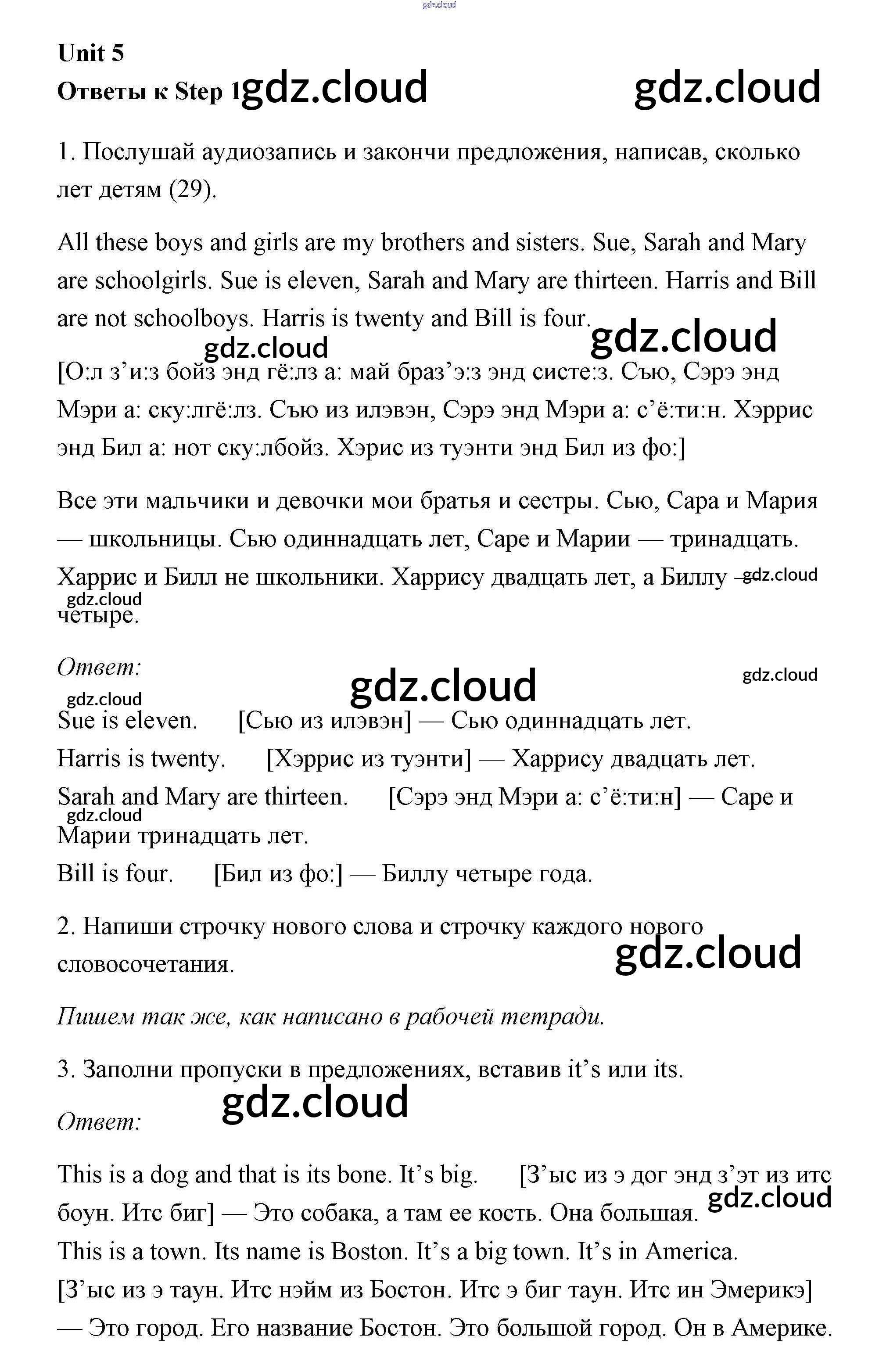 Ответы к Unit 5 (Step) по Английскому языку 3 класс Рабочая тетрадь Афанасьева Rainbow Дрофа