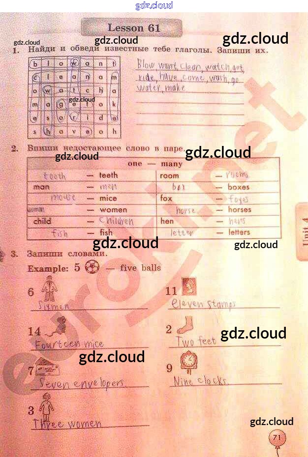 Ответ на задание 71 Рабочая тетрадь Английский язык за 3 (третий) класс Биболетова, Денисенко, Трубанева Enjoy English 2015
