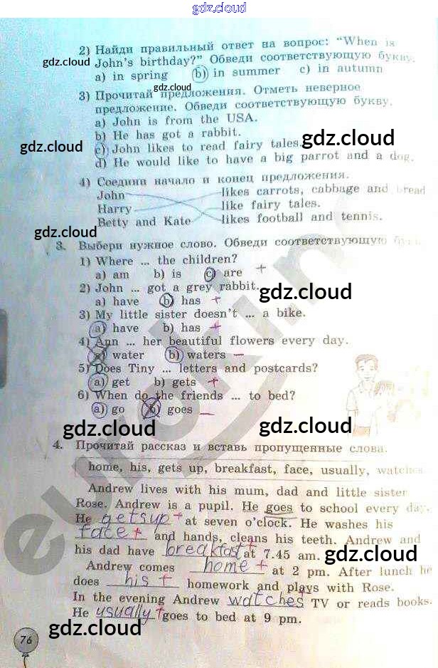 Ответ на задание 76 Рабочая тетрадь Английский язык за 3 (третий) класс Биболетова, Денисенко, Трубанева Enjoy English 2015