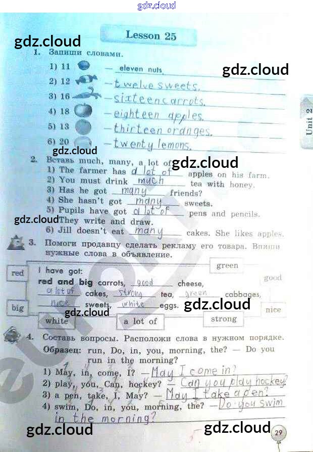Ответ на задание 29 Рабочая тетрадь Английский язык за 3 (третий) класс Биболетова, Денисенко, Трубанева Enjoy English 2015