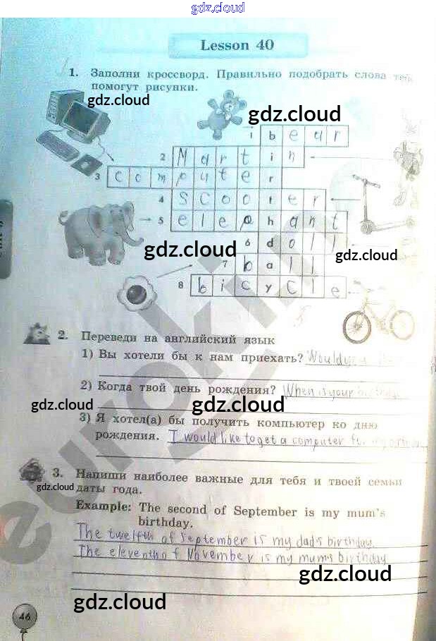Ответ на задание 46 Рабочая тетрадь Английский язык за 3 (третий) класс Биболетова, Денисенко, Трубанева Enjoy English 2015