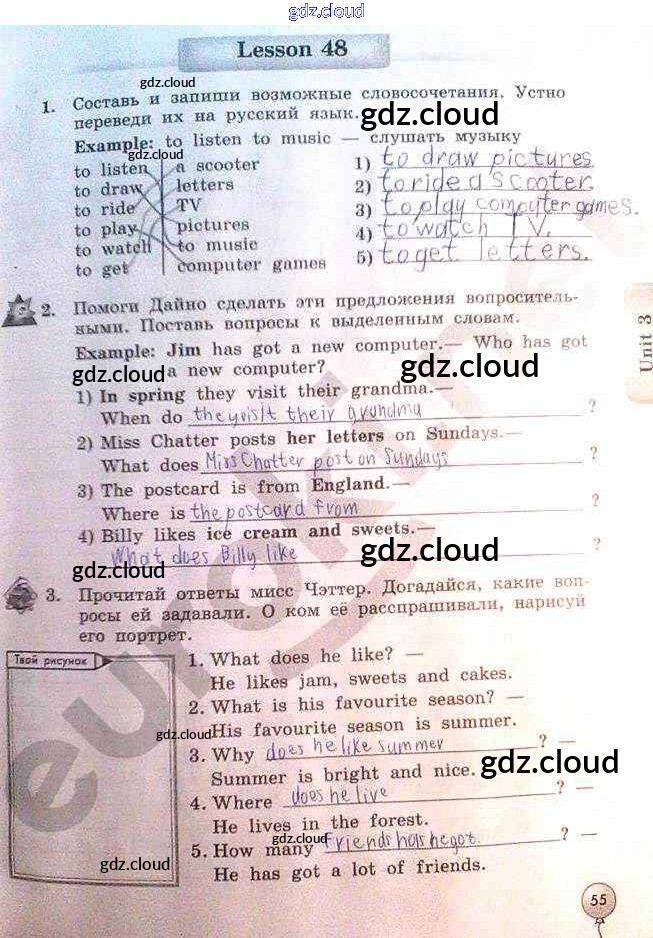 Ответ на задание 55 Рабочая тетрадь Английский язык за 3 (третий) класс Биболетова, Денисенко, Трубанева Enjoy English 2015
