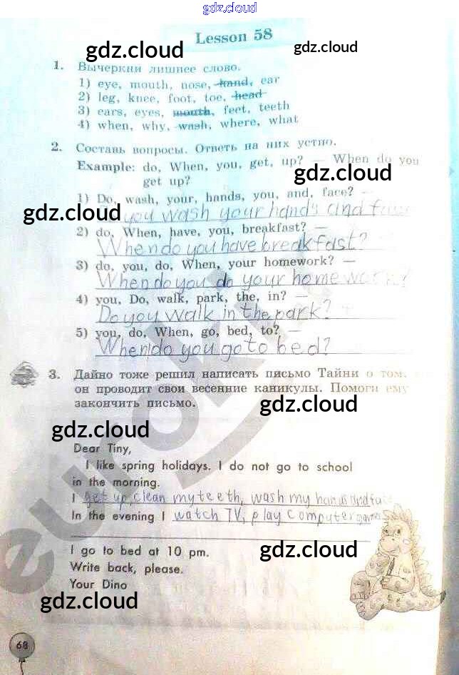 Ответ на задание 68 Рабочая тетрадь Английский язык за 3 (третий) класс Биболетова, Денисенко, Трубанева Enjoy English 2015