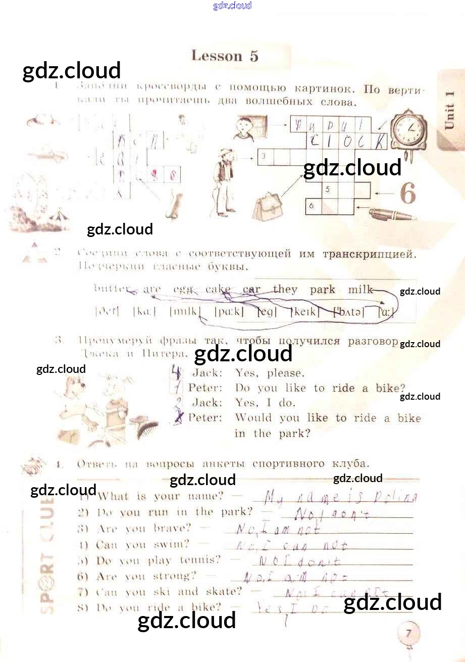 Ответ на задание 7 Рабочая тетрадь Английский язык за 3 (третий) класс Биболетова, Денисенко, Трубанева Enjoy English 2015