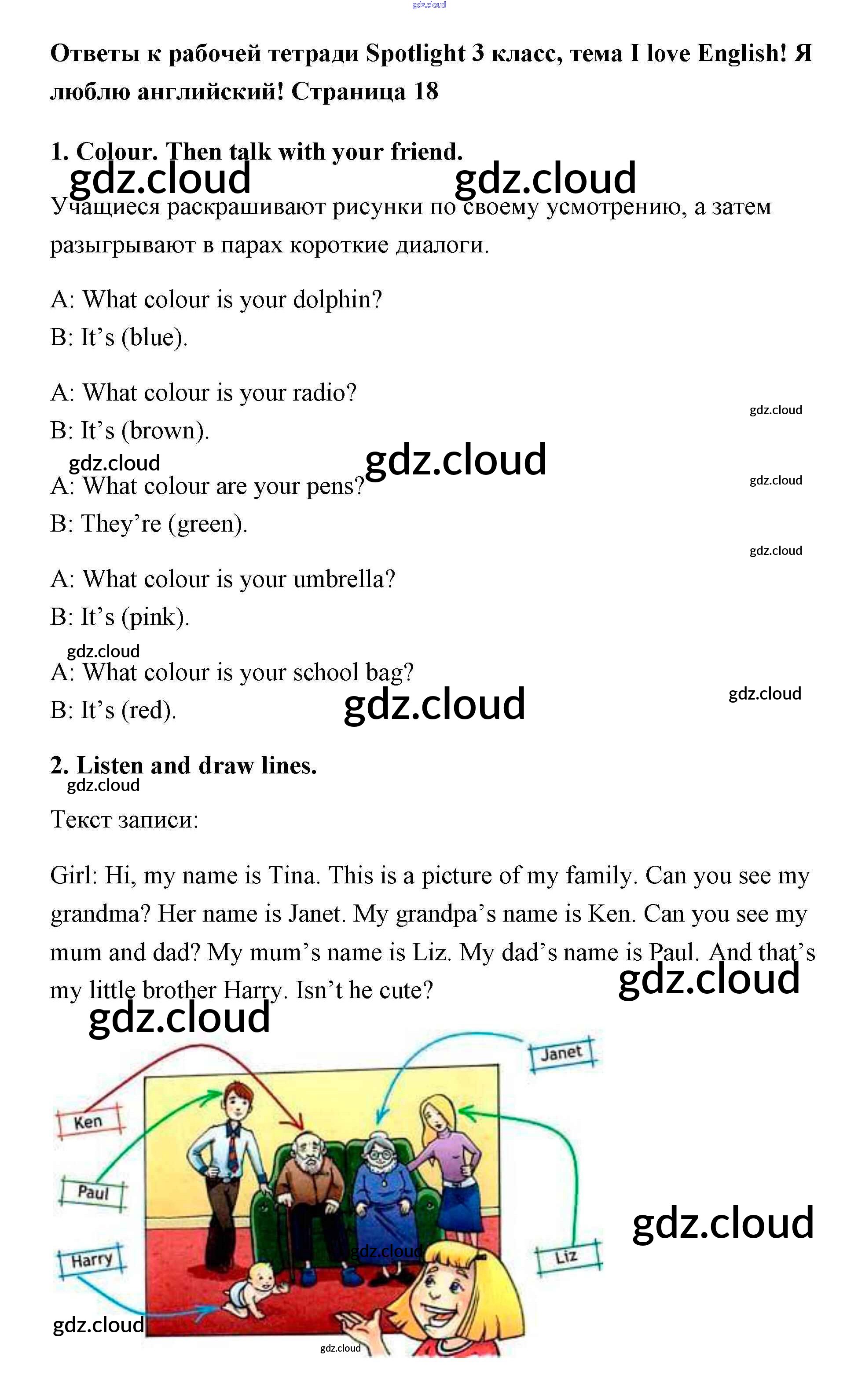 Ответ на задание 18-19 Рабочая тетрадь Английский язык за 3 (третий) класс Быкова, Эванс, Дули, Поспелова Spotlight 2016