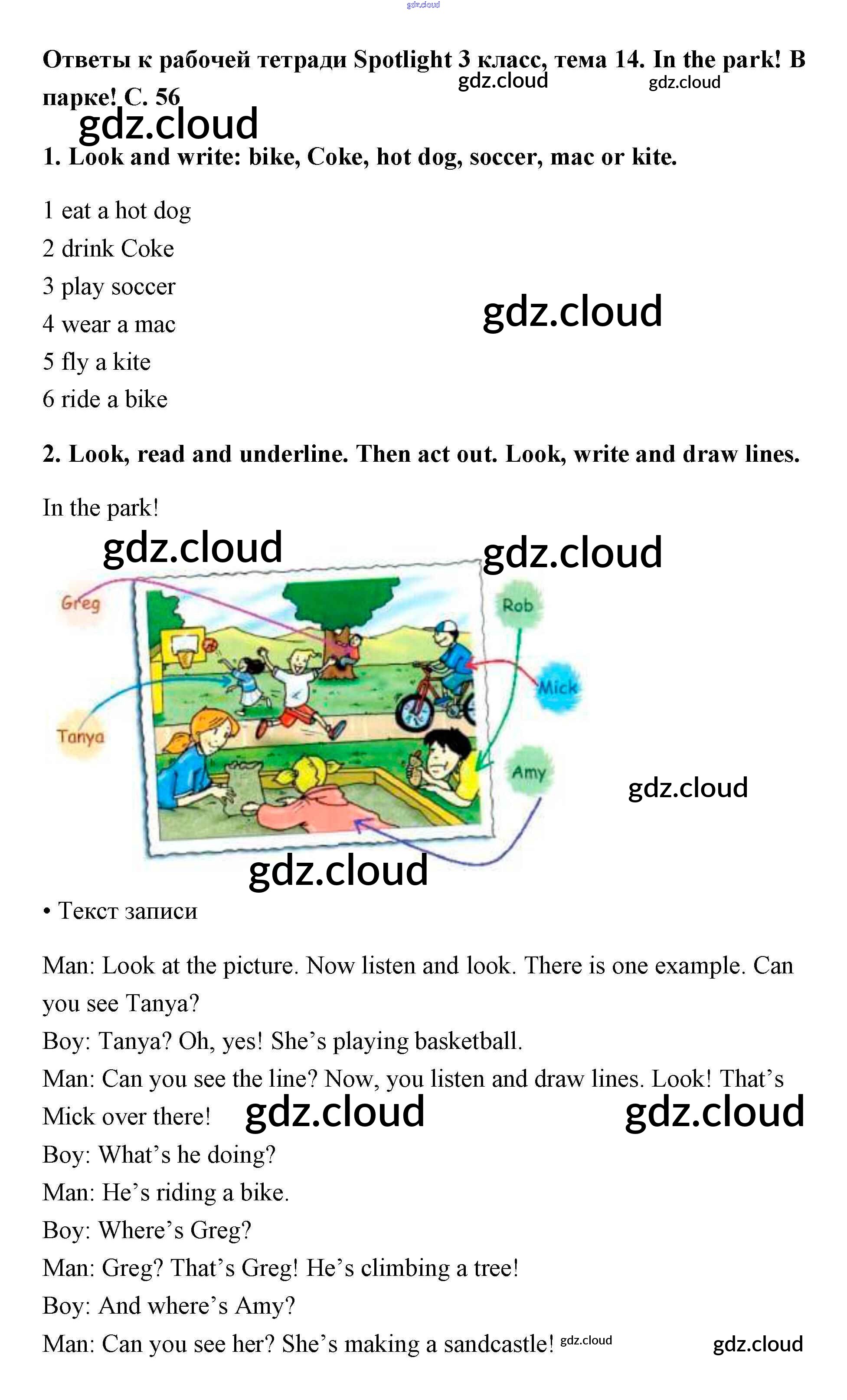 Ответ на задание 56-57 Рабочая тетрадь Английский язык за 3 (третий) класс Быкова, Эванс, Дули, Поспелова Spotlight 2016