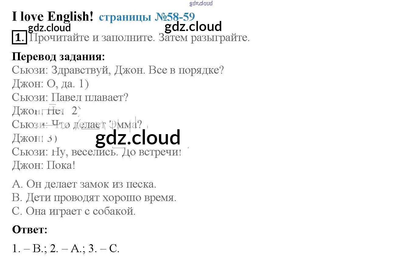 Ответ на задание 58-59 Рабочая тетрадь Английский язык за 3 (третий) класс Быкова, Эванс, Дули, Поспелова Spotlight 2016