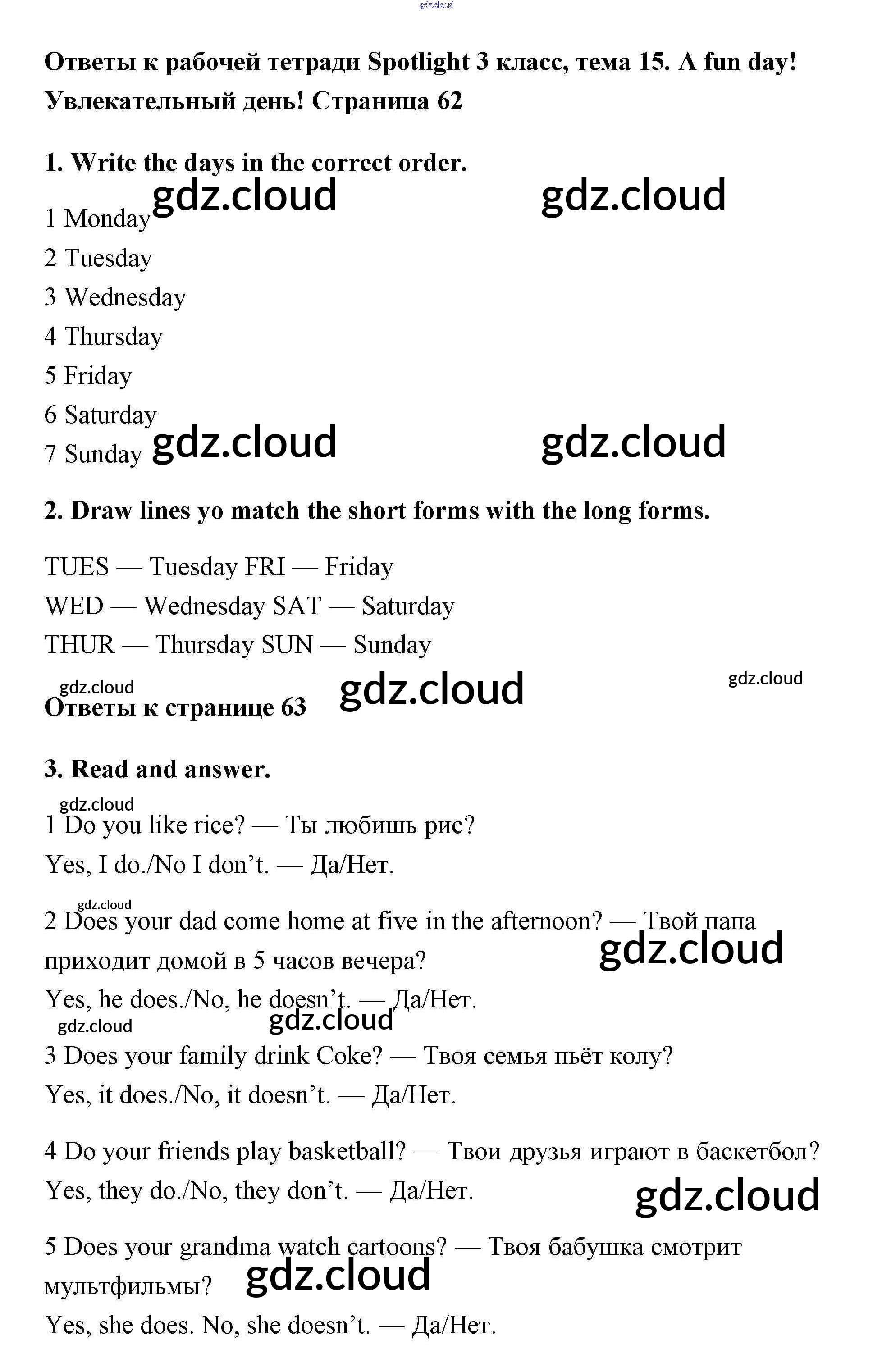Ответ на задание 62-63 Рабочая тетрадь Английский язык за 3 (третий) класс Быкова, Эванс, Дули, Поспелова Spotlight 2016