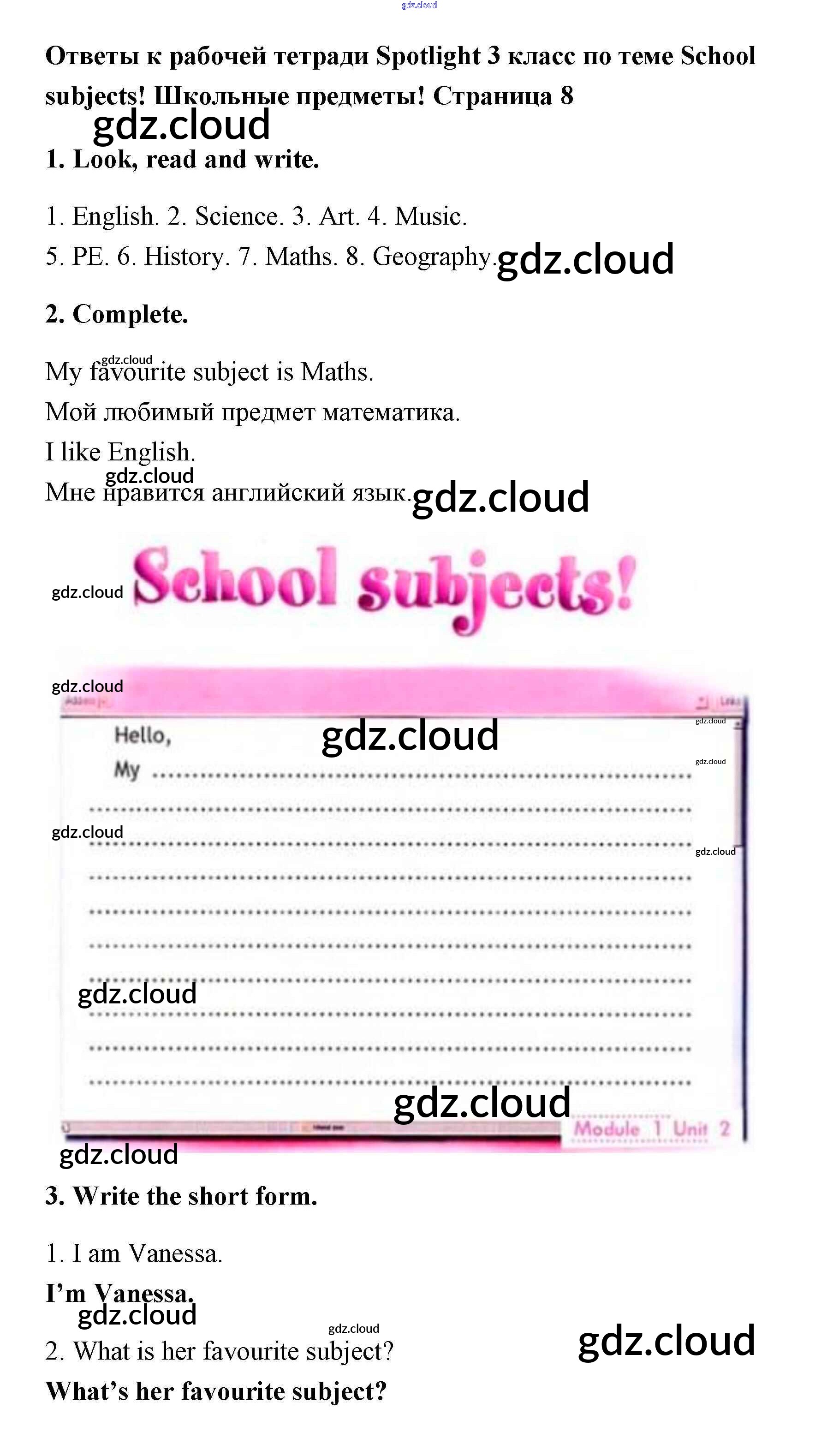 Ответ на задание 8-9 Рабочая тетрадь Английский язык за 3 (третий) класс Быкова, Эванс, Дули, Поспелова Spotlight 2016