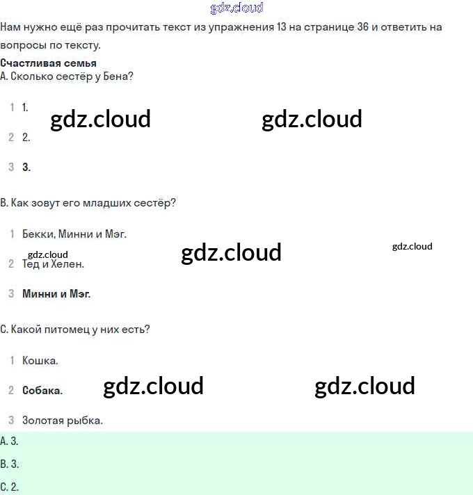 Ответ на задание 36 Сборник упражнений Английский язык за 3 (третий) класс Быкова, Поспелова Spotlight 2012