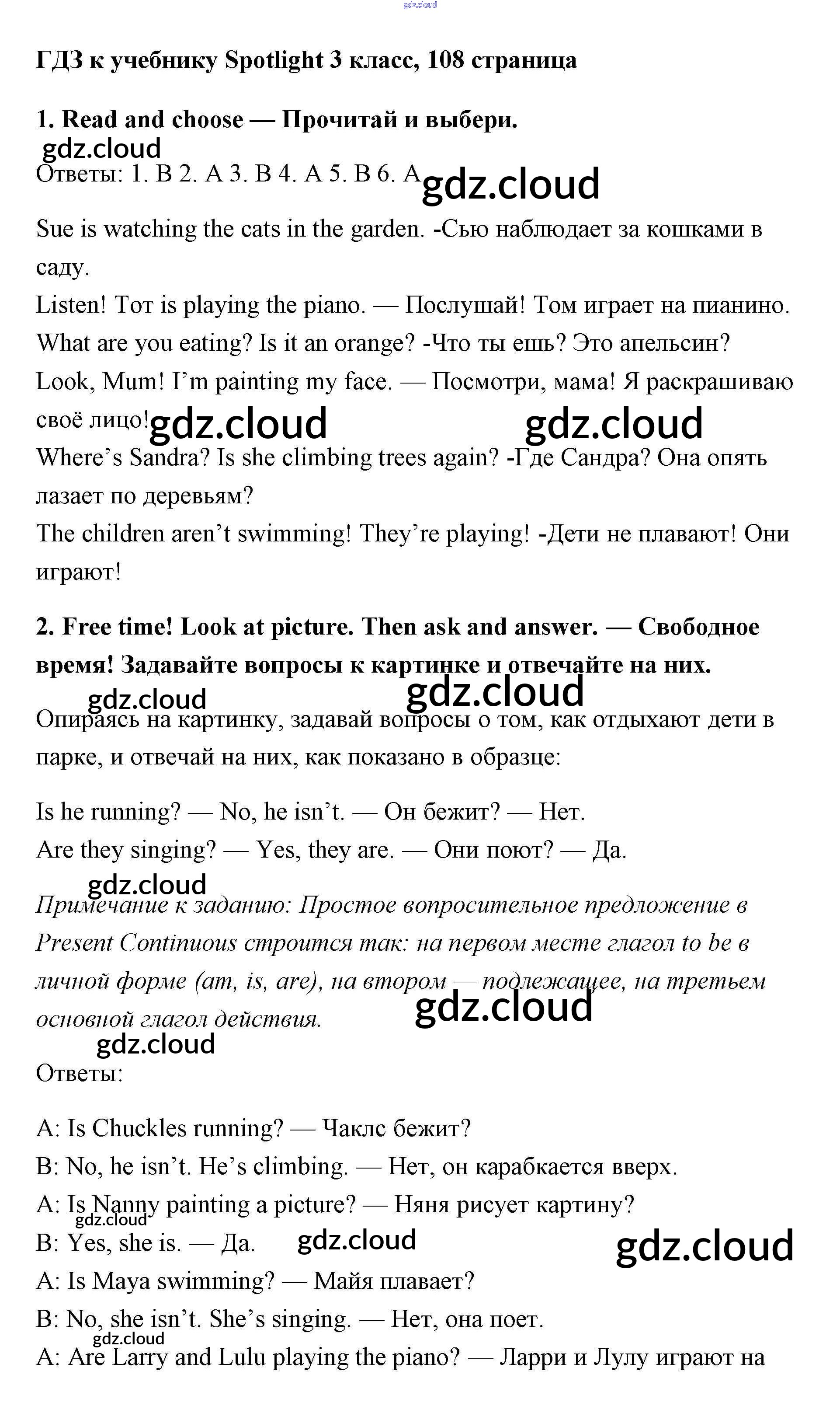 Ответ на задание 108 Учебник Английский язык за 3 (третий) класс Быкова, Эванс, Дули, Поспелова Spotlight 2015
