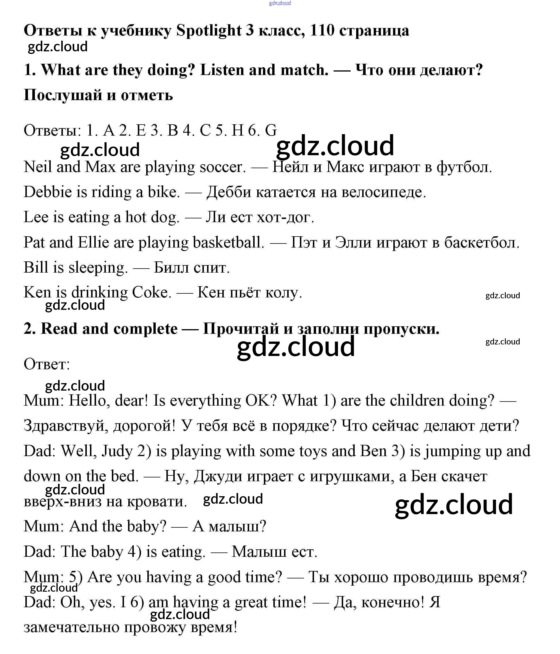 Ответ на задание 110 Учебник Английский язык за 3 (третий) класс Быкова, Эванс, Дули, Поспелова Spotlight 2015