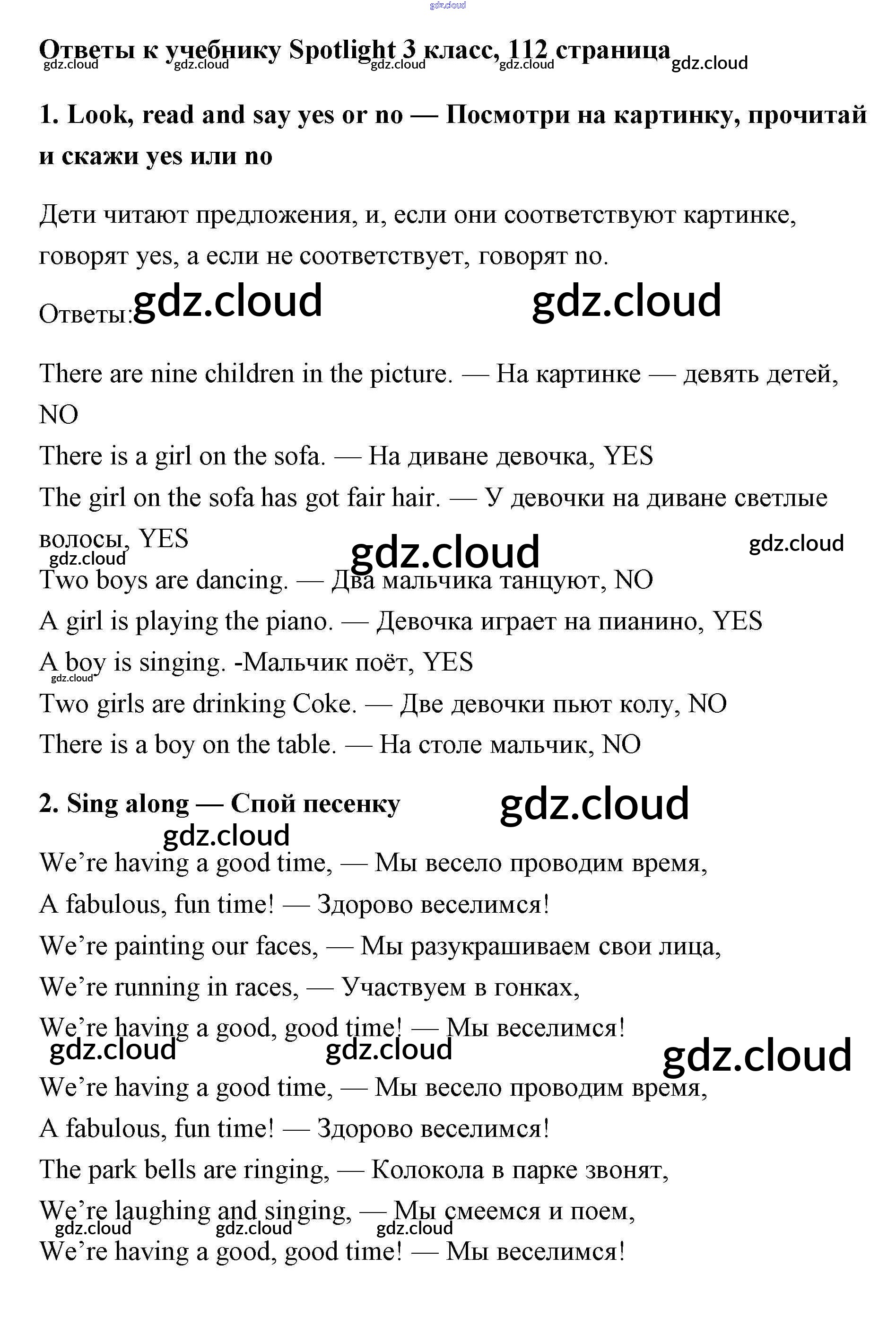 Ответ на задание 112 Учебник Английский язык за 3 (третий) класс Быкова, Эванс, Дули, Поспелова Spotlight 2015