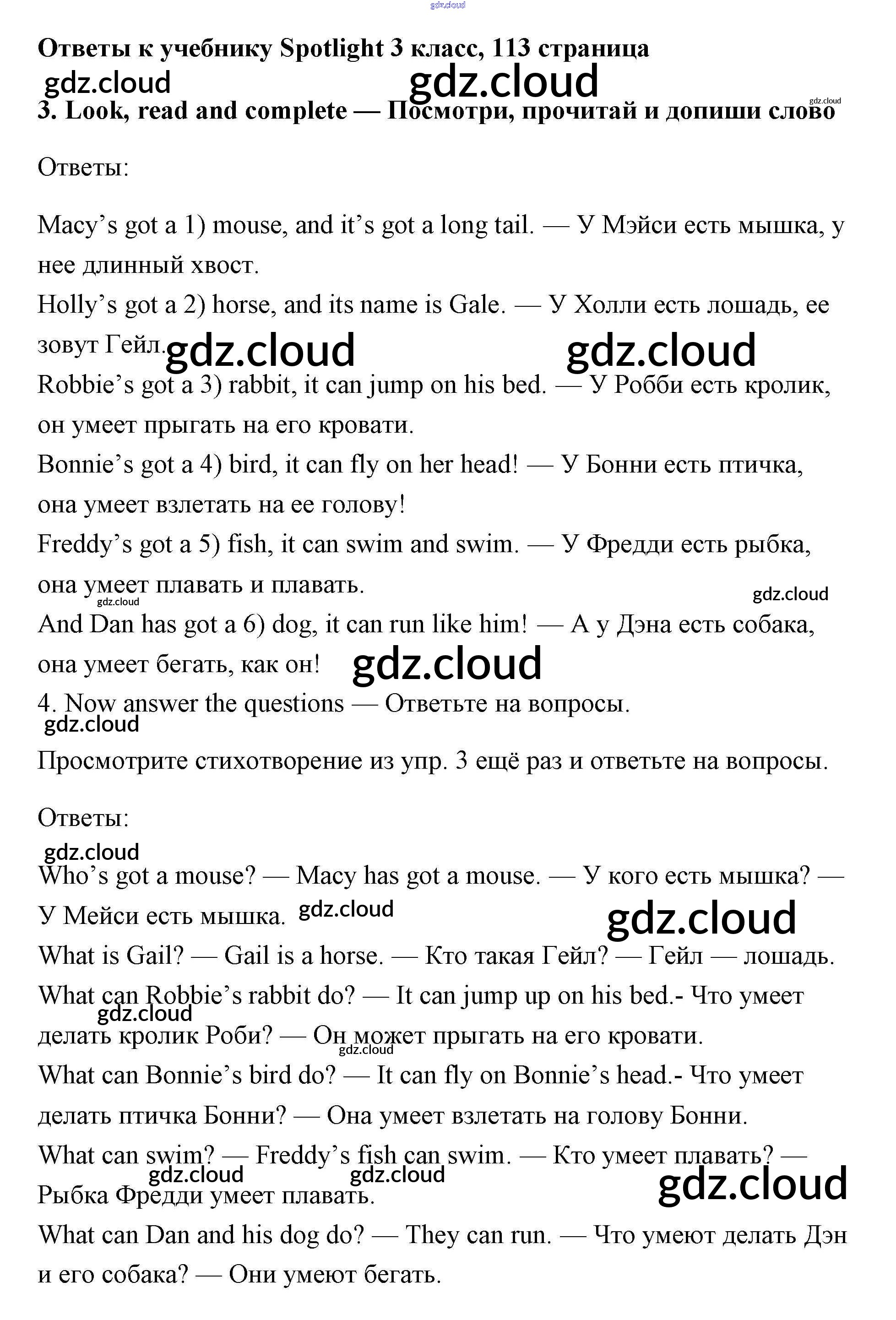 Ответ на задание 113 Учебник Английский язык за 3 (третий) класс Быкова, Эванс, Дули, Поспелова Spotlight 2015