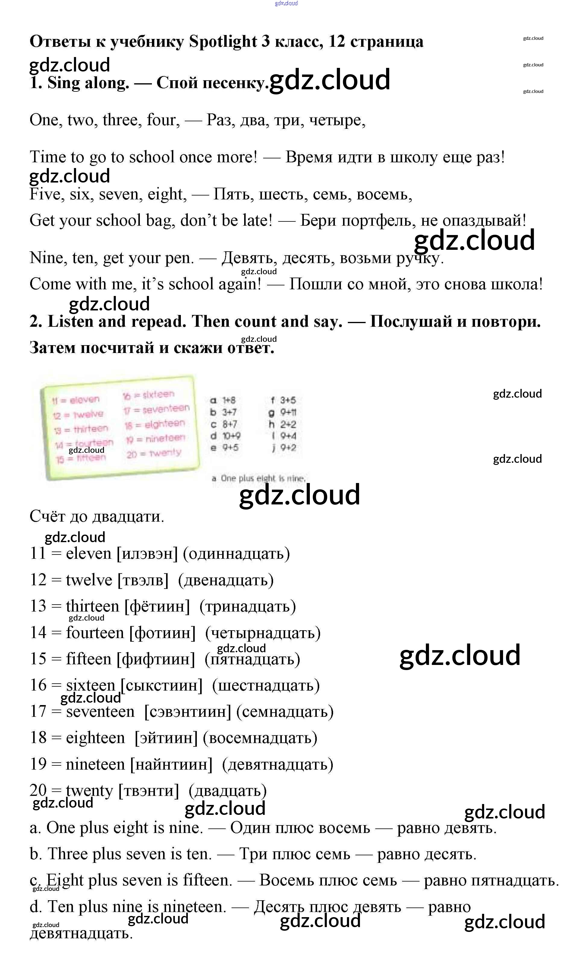 Ответ на задание 12 Учебник Английский язык за 3 (третий) класс Быкова, Эванс, Дули, Поспелова Spotlight 2015