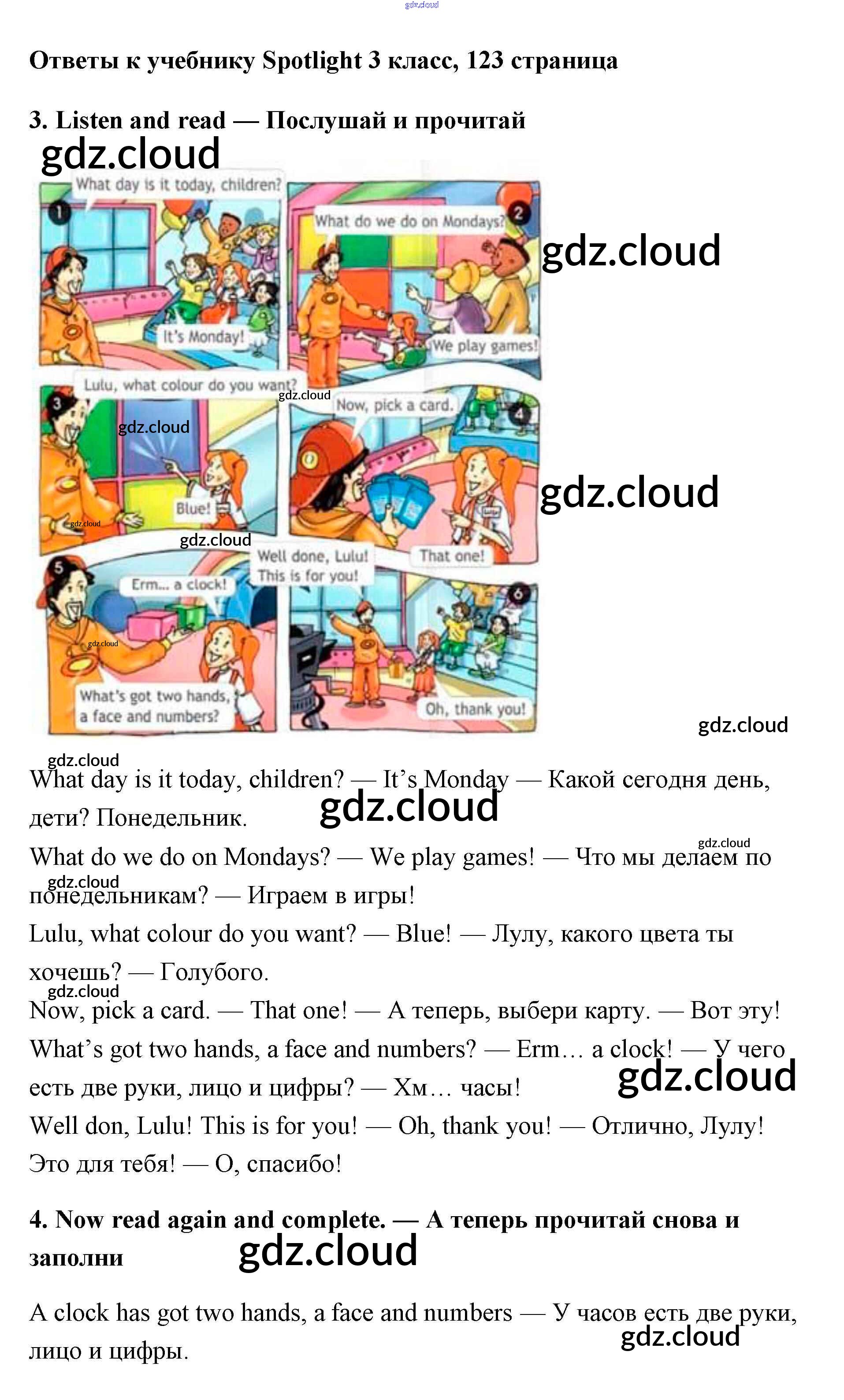 Ответ на задание 123 Учебник Английский язык за 3 (третий) класс Быкова, Эванс, Дули, Поспелова Spotlight 2015