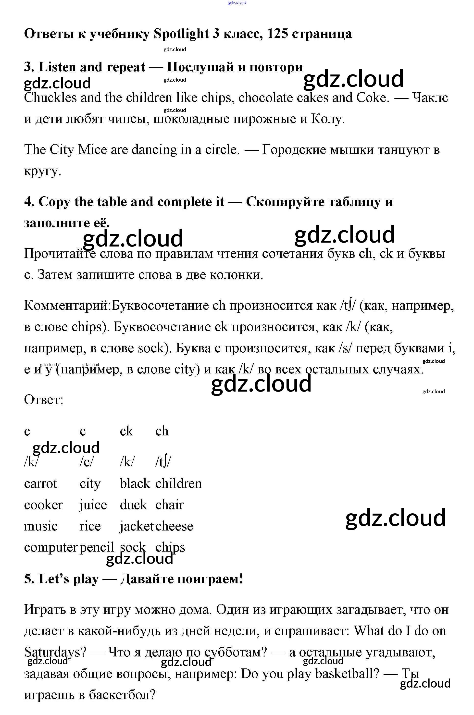 Ответ на задание 125 Учебник Английский язык за 3 (третий) класс Быкова, Эванс, Дули, Поспелова Spotlight 2015
