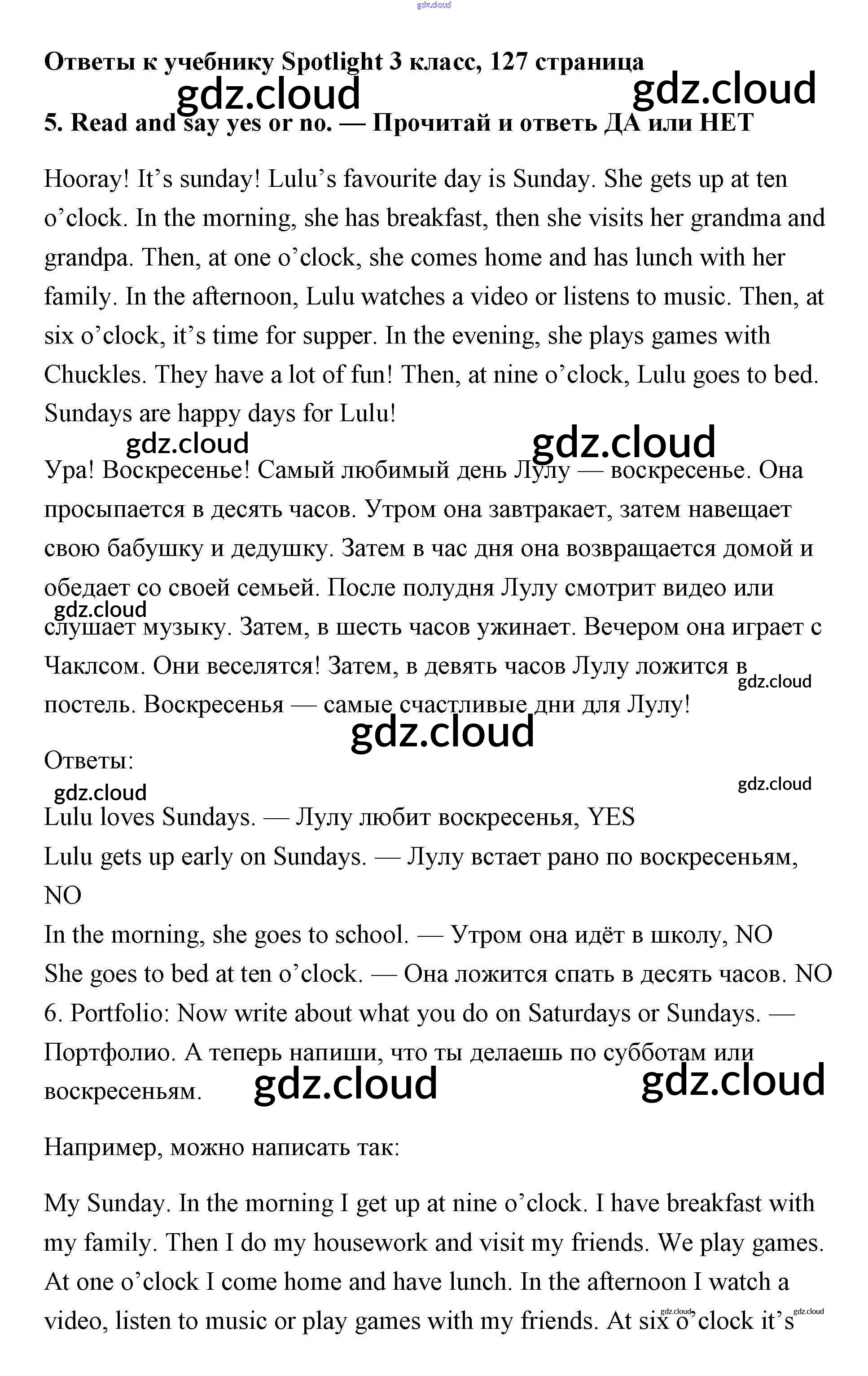 Ответ на задание 127 Учебник Английский язык за 3 (третий) класс Быкова, Эванс, Дули, Поспелова Spotlight 2015