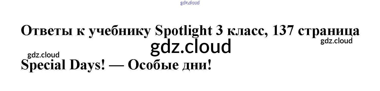 Ответ на задание 137 Учебник Английский язык за 3 (третий) класс Быкова, Эванс, Дули, Поспелова Spotlight 2015 ФГОС онлайн и без номера телефона.