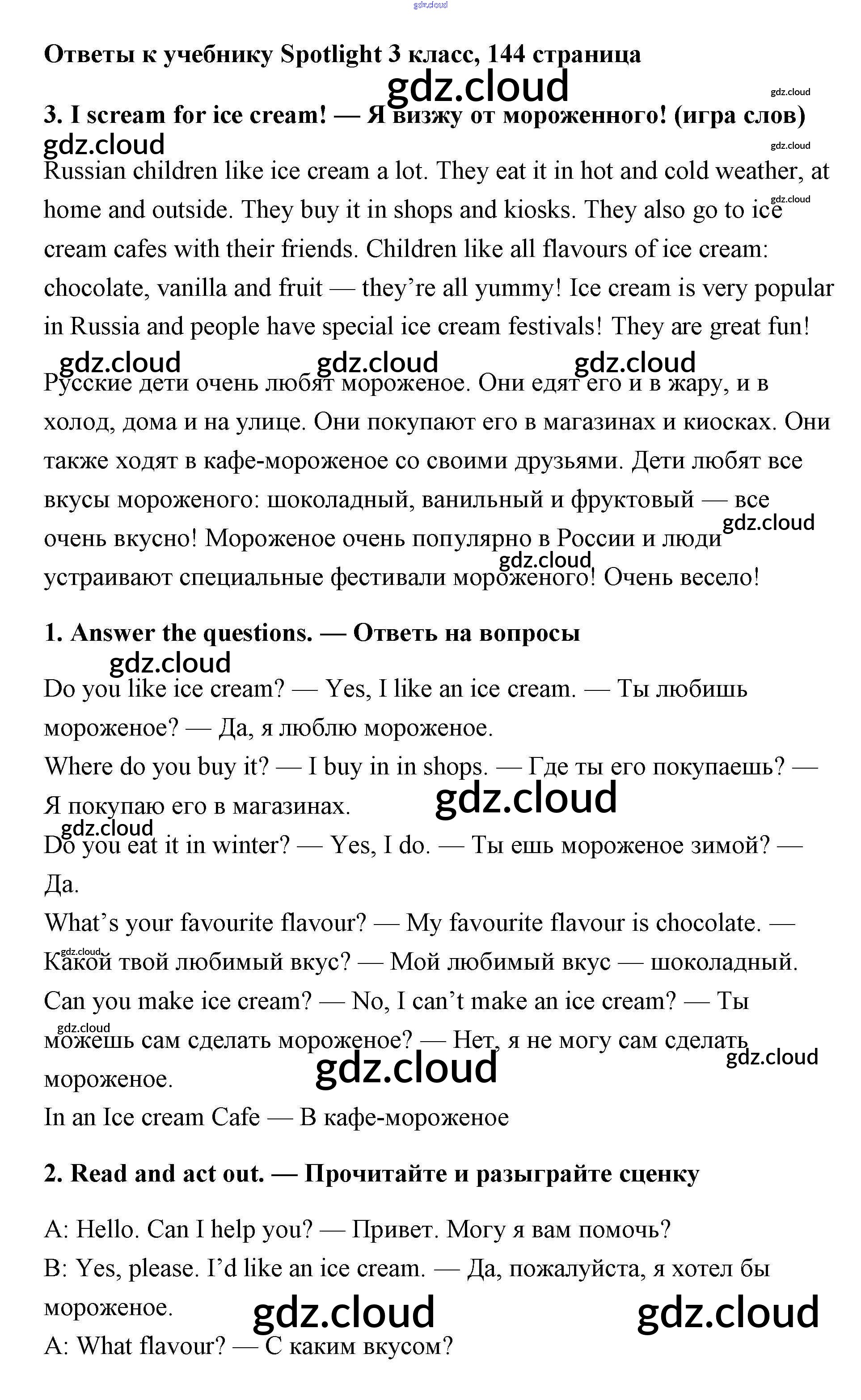 Ответ на задание 144 Учебник Английский язык за 3 (третий) класс Быкова, Эванс, Дули, Поспелова Spotlight 2015