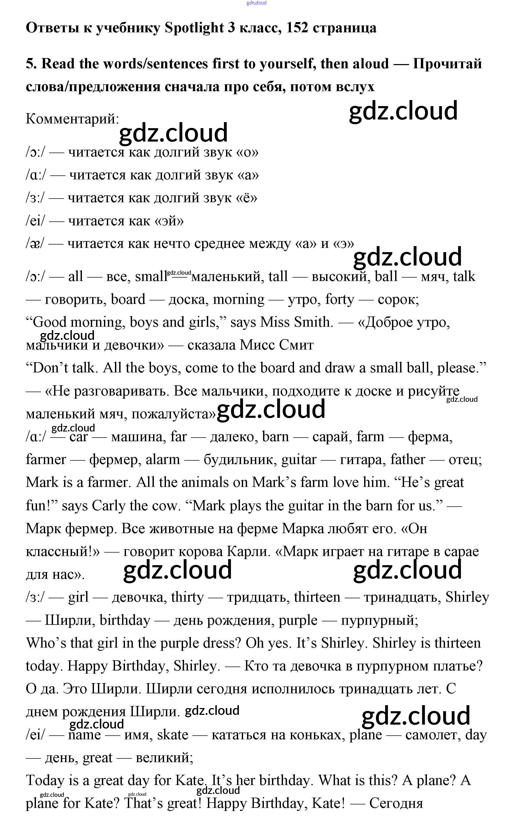 Ответ на задание 152 Учебник Английский язык за 3 (третий) класс Быкова, Эванс, Дули, Поспелова Spotlight 2015