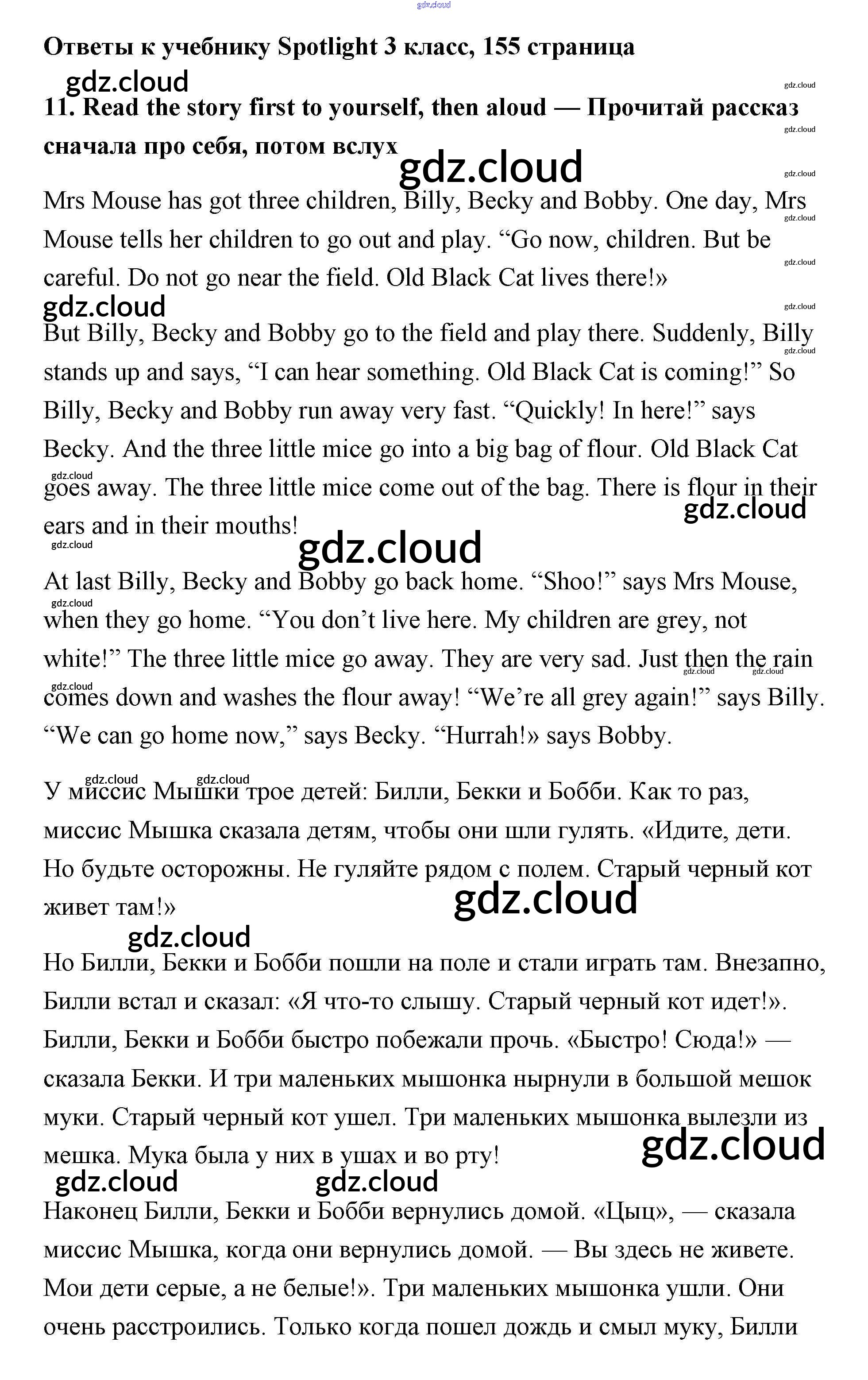 Ответ на задание 155 Учебник Английский язык за 3 (третий) класс Быкова, Эванс, Дули, Поспелова Spotlight 2015
