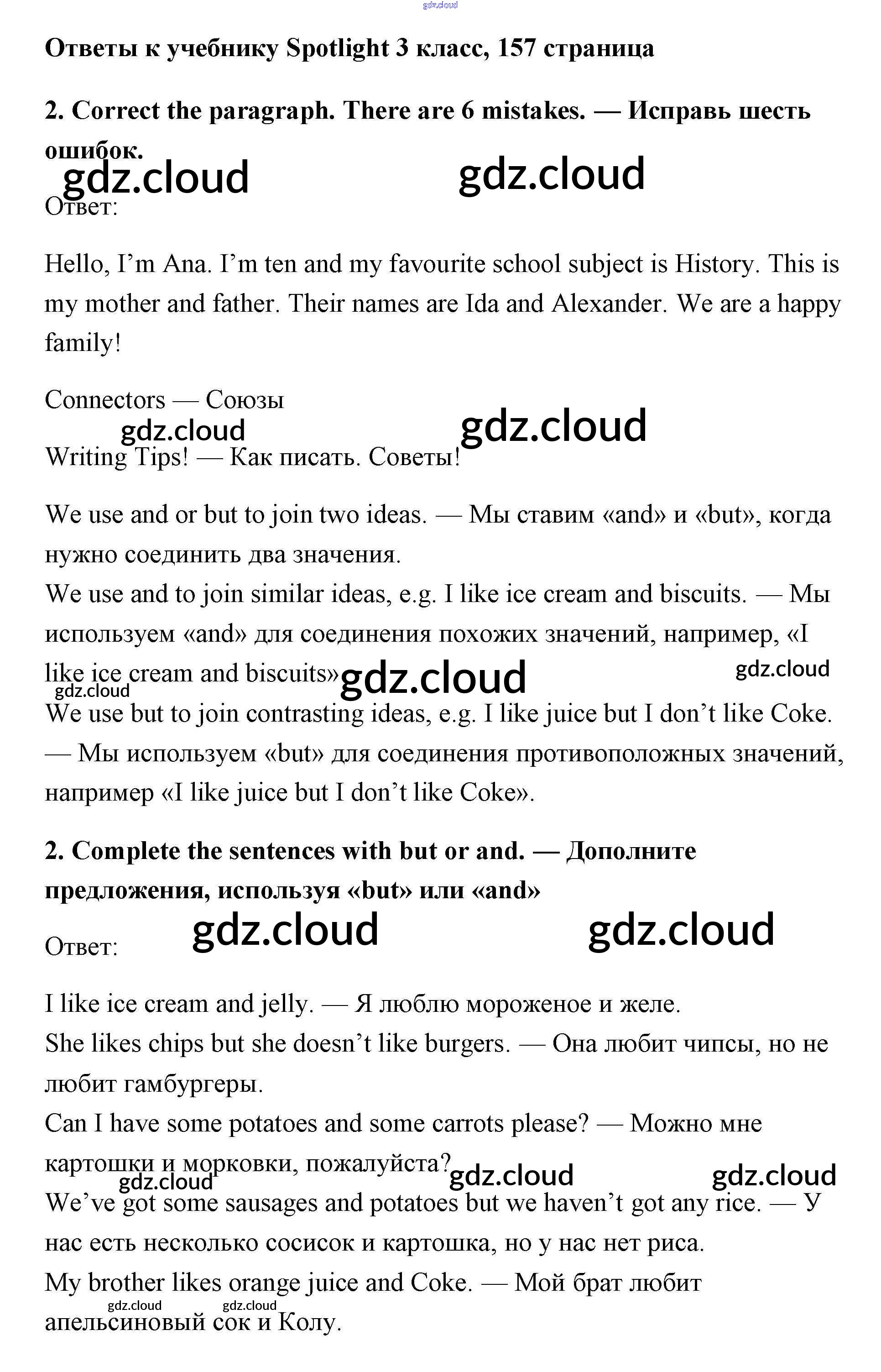 Ответ на задание 157 Учебник Английский язык за 3 (третий) класс Быкова, Эванс, Дули, Поспелова Spotlight 2015