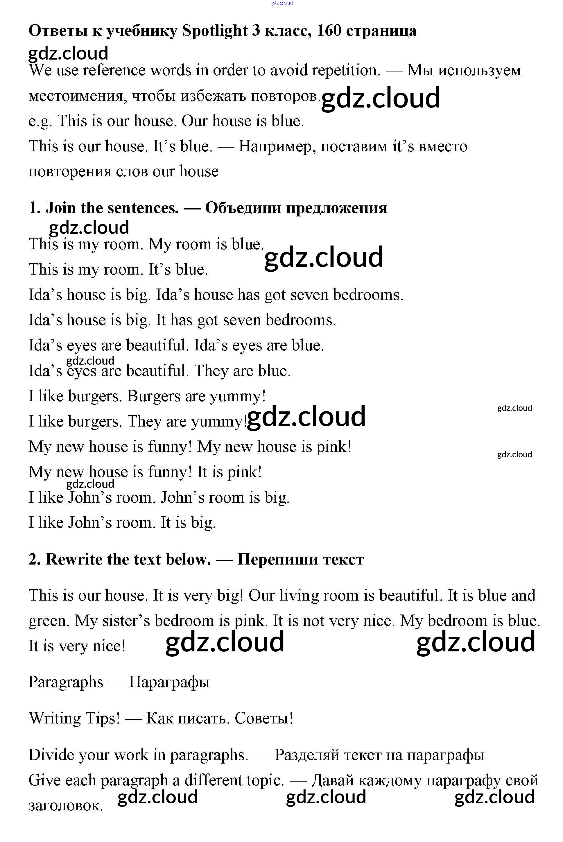Ответ на задание 160 Учебник Английский язык за 3 (третий) класс Быкова, Эванс, Дули, Поспелова Spotlight 2015 ФГОС онлайн и без номера телефона.
